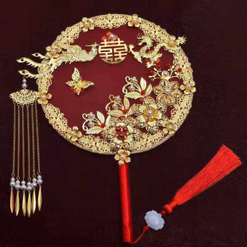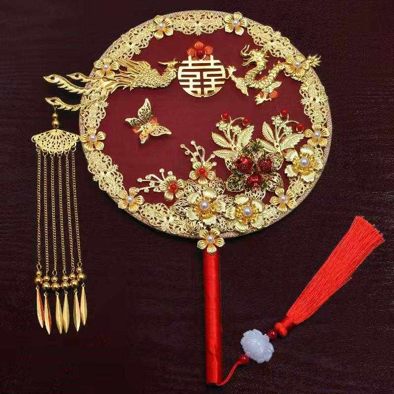 📚 新款直销团扇古风 新娘秀禾结婚礼中国秀禾服扇子中式汉服手捧花d