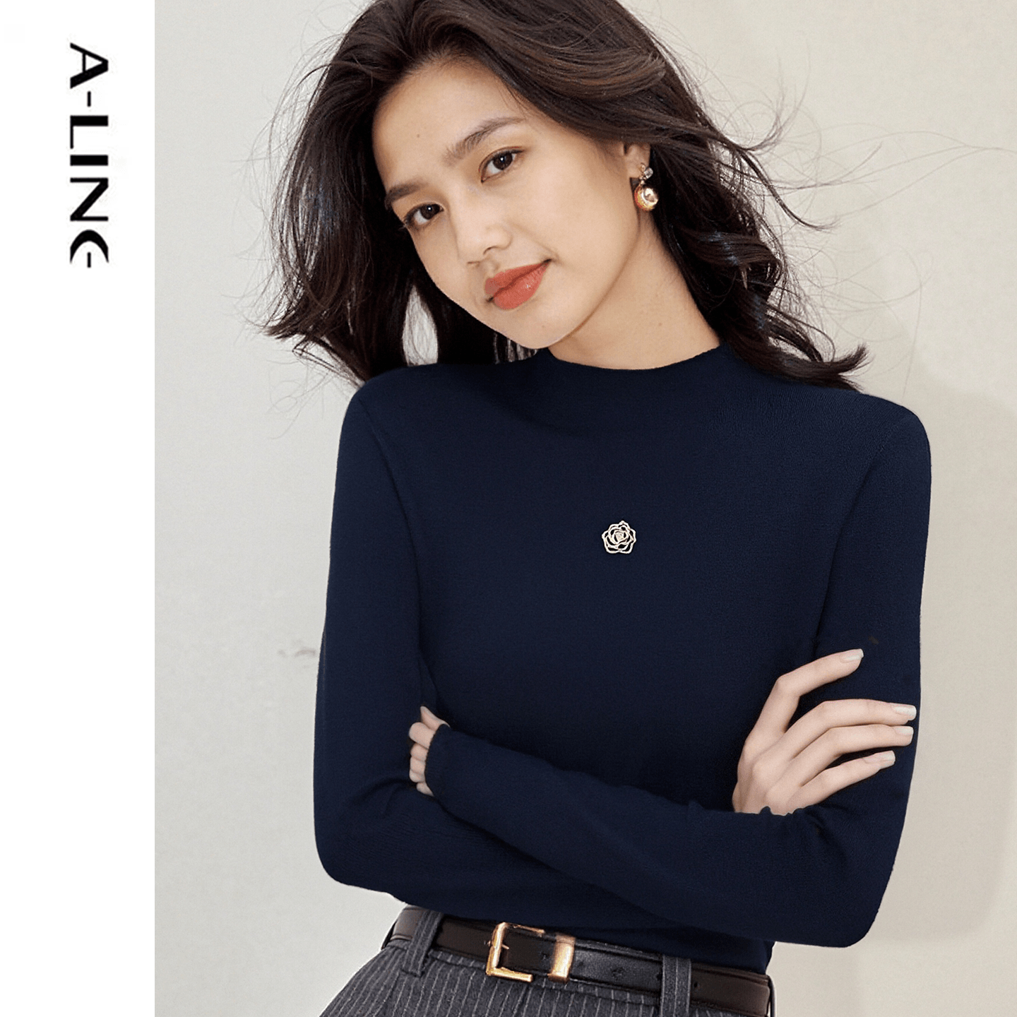 📚 Aline/阿莱纯色半高领针织打底衫 2025秋冬女装新品
