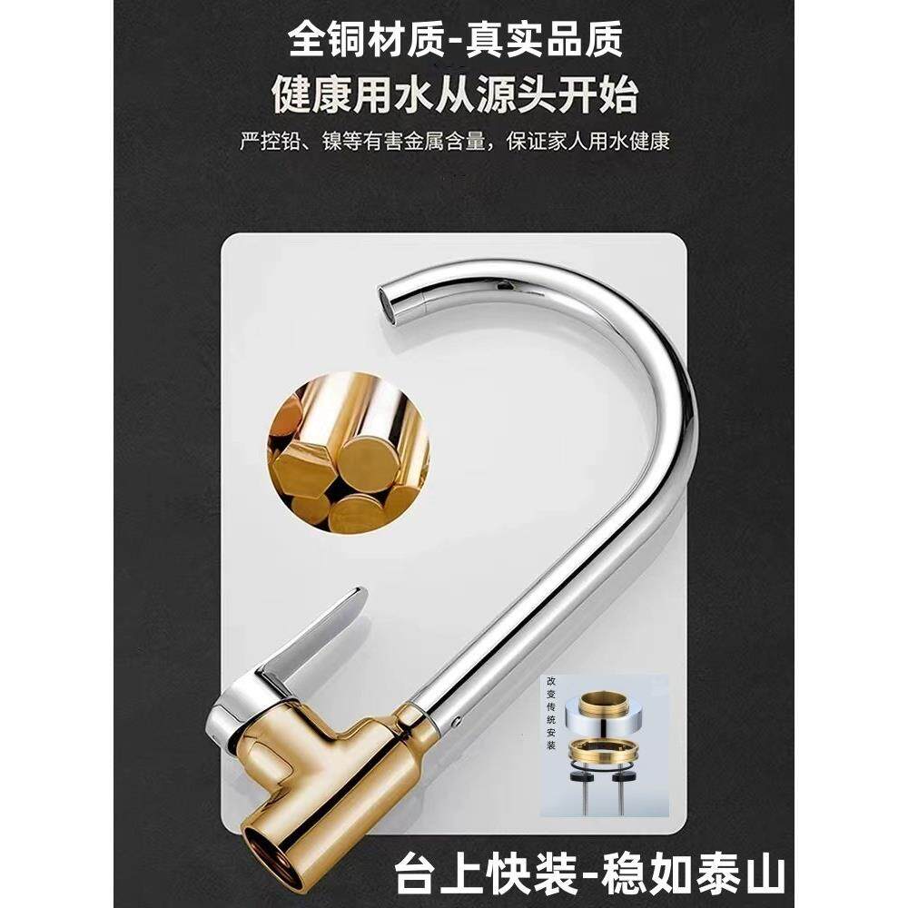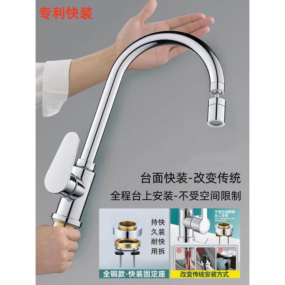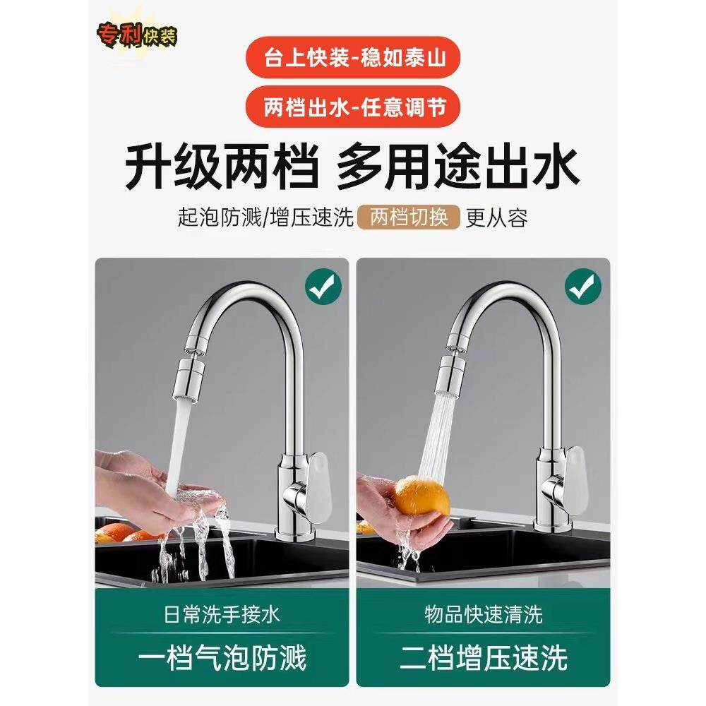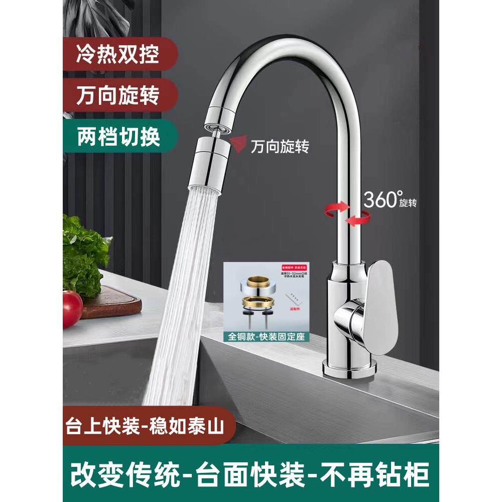 📚 桌面快速安装,厨房冷热双控水龙头,家用旋转水槽,碗防飞溅,防