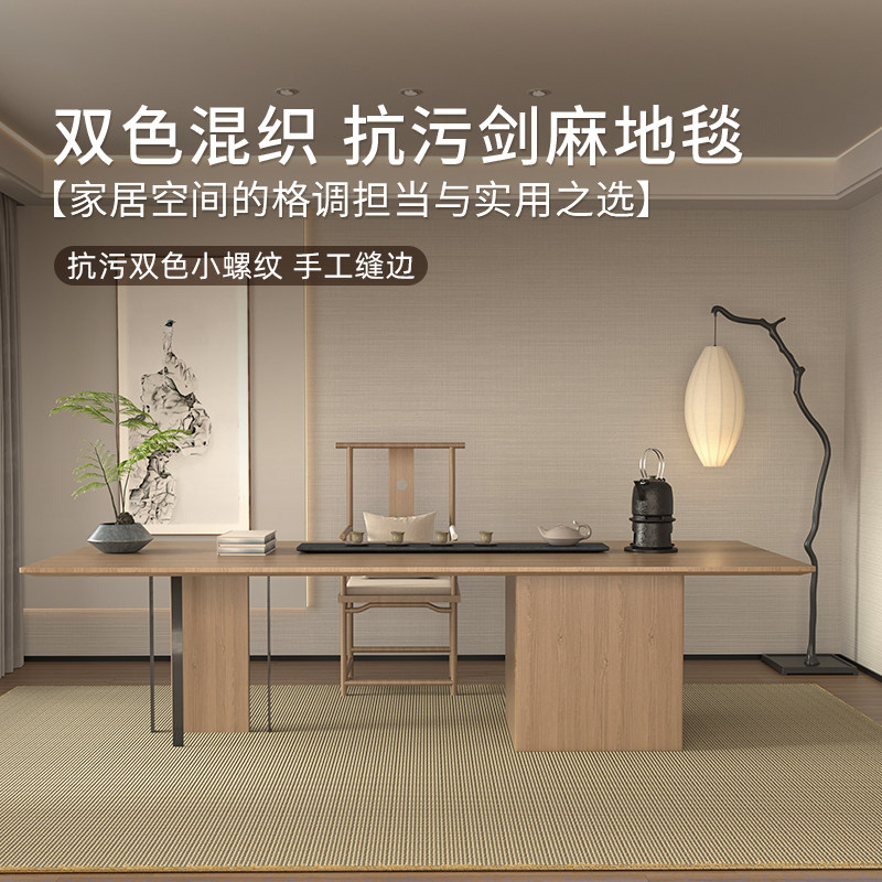 📚 抗污双色小螺纹缝边剑麻纤维编织天然健康环保茶室客厅书房地毯