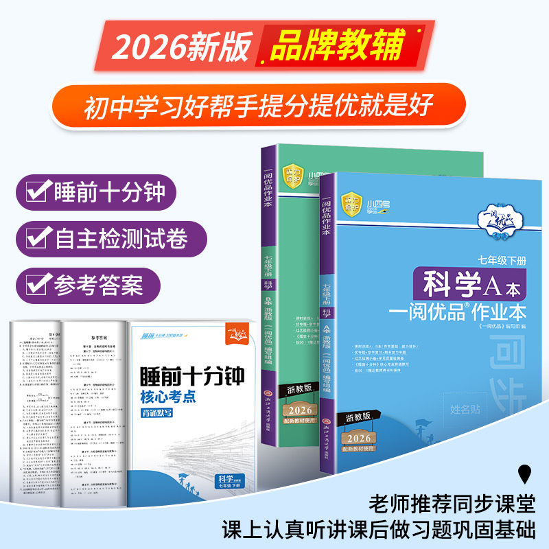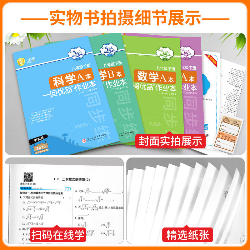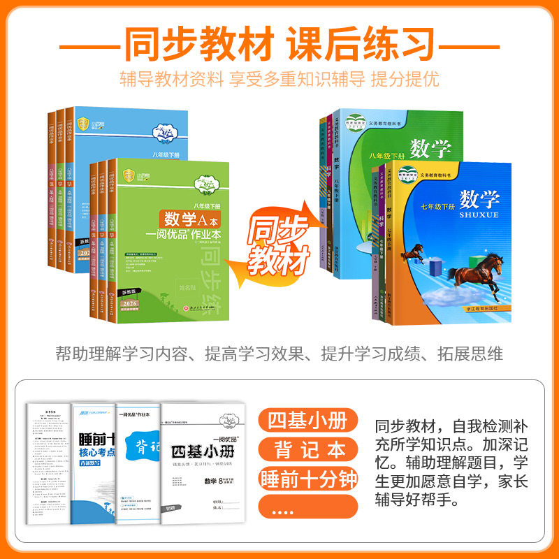 📚 浙江专用 一阅优品作业本七年级八九年级上册下册数学英语科学全套人教浙教版 初一二三课本同步训练课时测试卷教材练习册必刷题