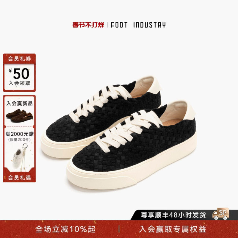 📚 足下工业编织板鞋 FOOT INDUSTRY 黑色舒适透气厚底男女同款休闲