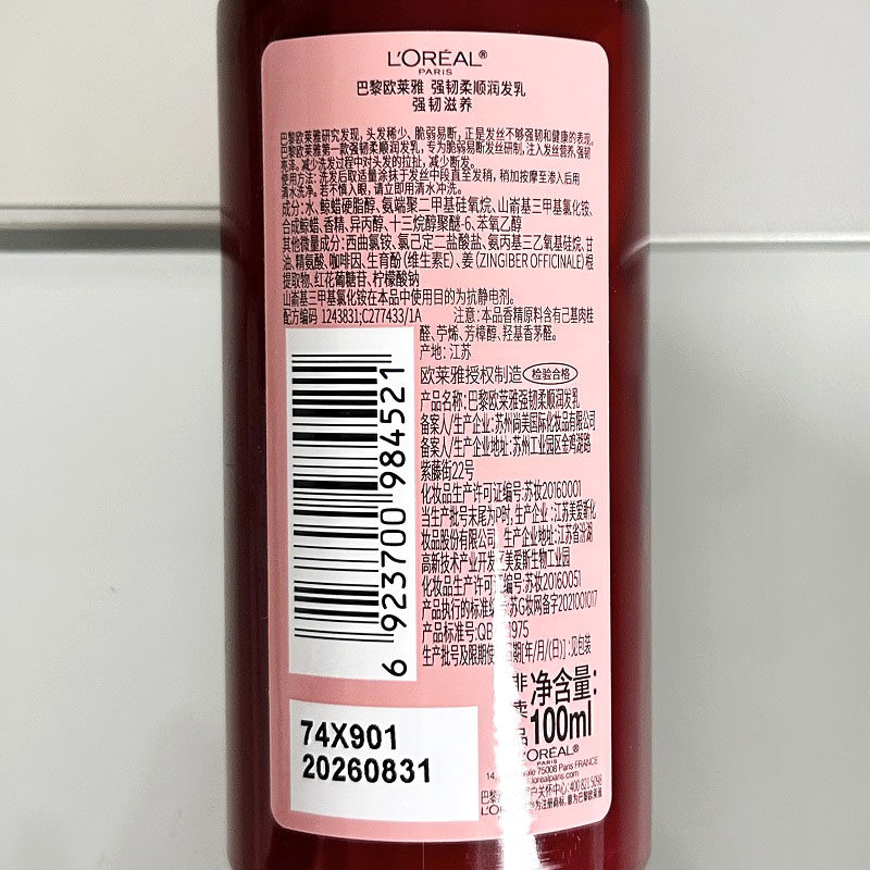 📚 欧莱雅强韧柔顺护发素生姜固发润发乳粉瓶100ml小样旅行装