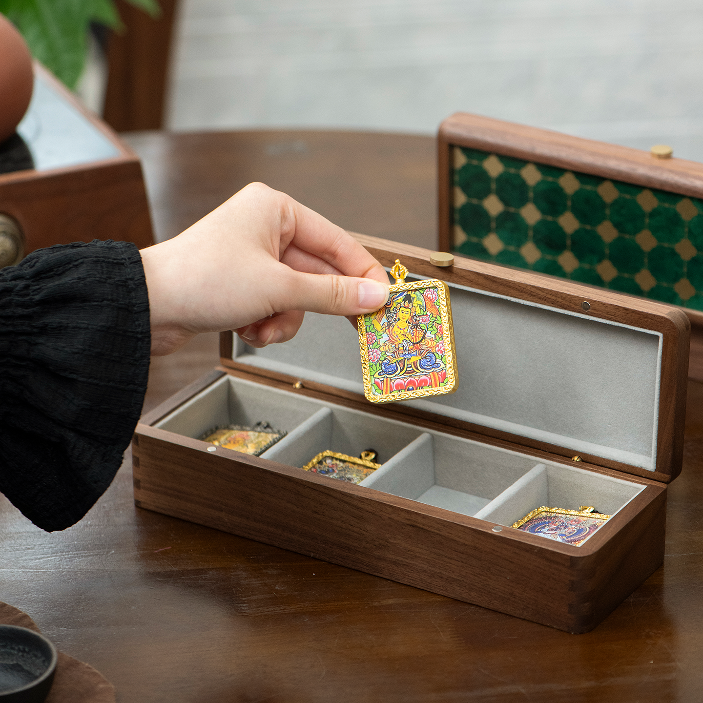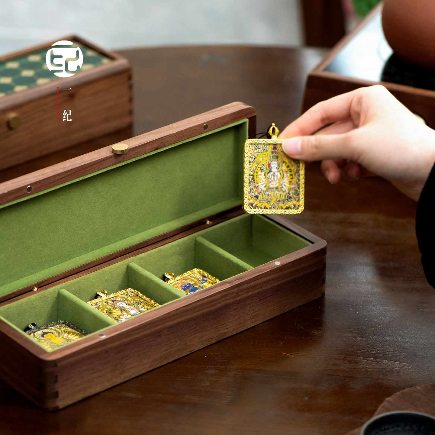 📚 一纪唐卡收纳盒玉牌吊坠饰品盒复古佛牌天珠收藏防尘空盒礼盒高档