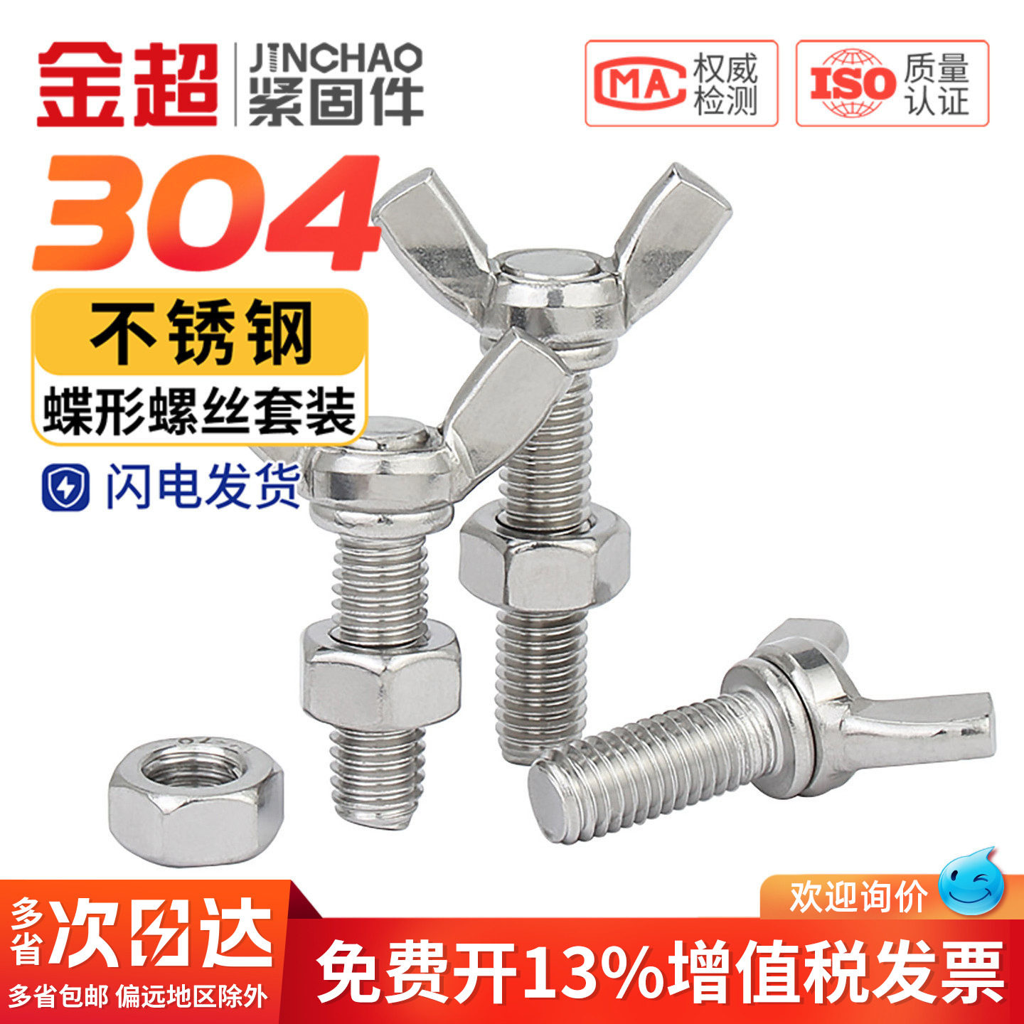 📚 金超蝶形螺丝螺母套装 304不锈钢蝶型螺栓蝴蝶手拧螺丝M3M4M5M6M8