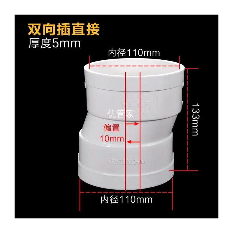 📚 110PVC排水管预埋偏心直接 调节中间距下水管接头 偏置直接