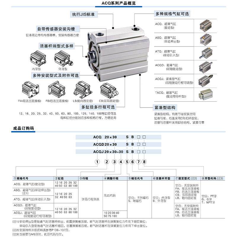 📚 薄型气缸ACQ12/16/20/25/32/40/50/63/80/100X5X10X20X30X50X100S
