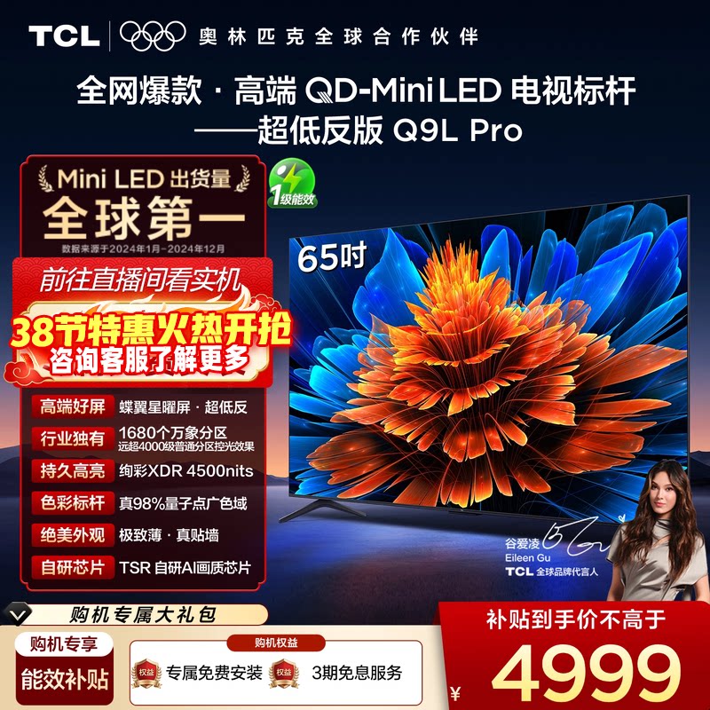 📚 TCL电视 65Q9L Pro 65英寸 QD-Mini LED华星蝶翼星曜屏平板电视机