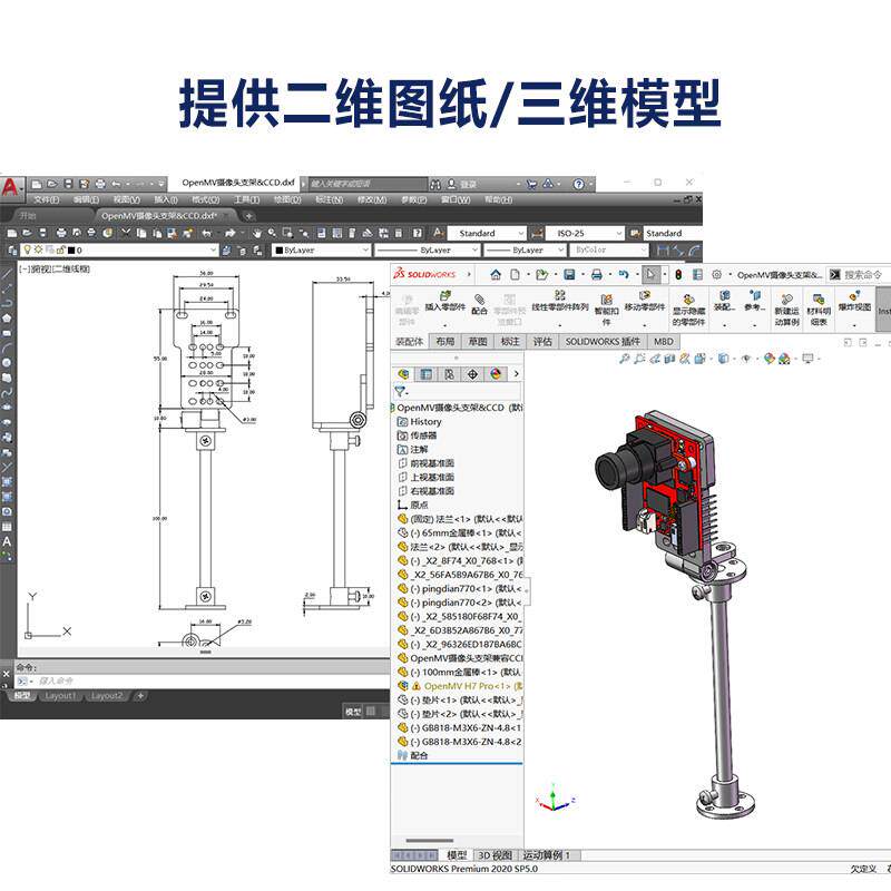 📚 兼容openmv摄像头支架 K210视觉模块线性CCD高度角度可调节铰炼