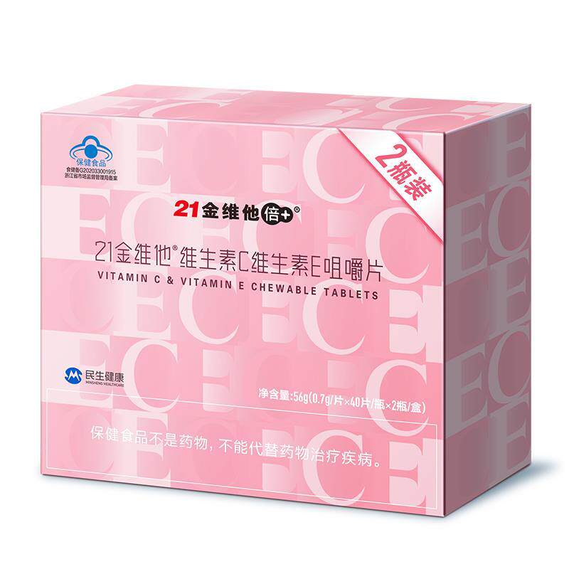 📚 21金维他 维生素C维生素E咀嚼片40粒*2瓶礼盒 成年女性VC+VE组合a