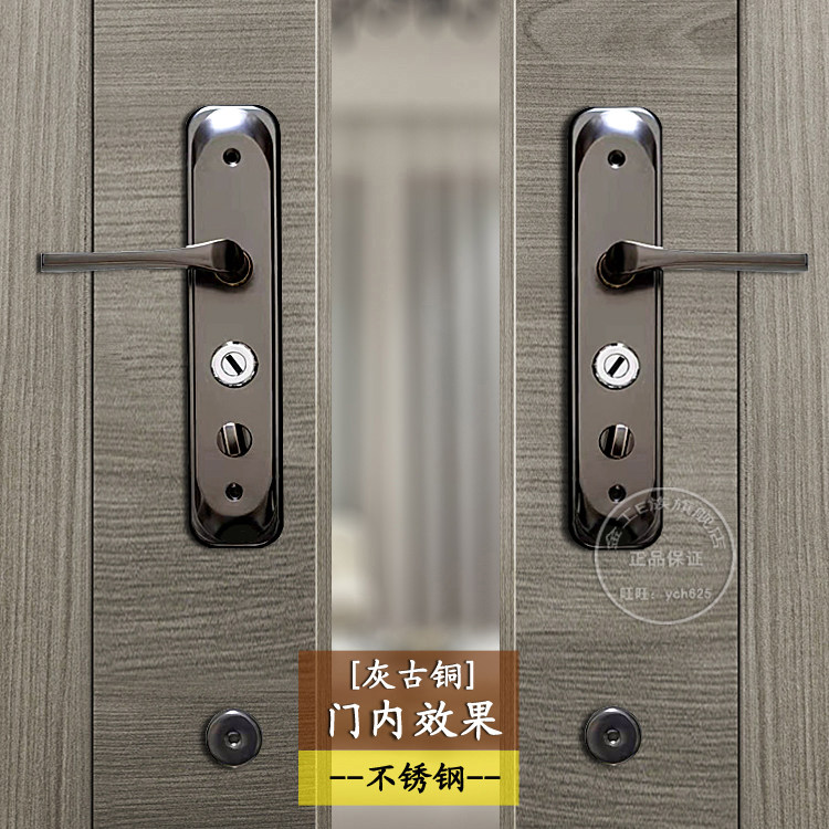 📚 简约轻奢不锈钢大门锁C级防盗实木双开对开进户锁具纯铜锁芯面板