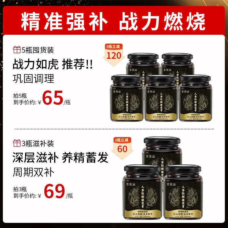 📚 吉食滋人参雄花膏牡蛎中医调理温肾强益精虚弱补亏硬超长续航撑满