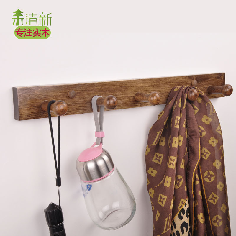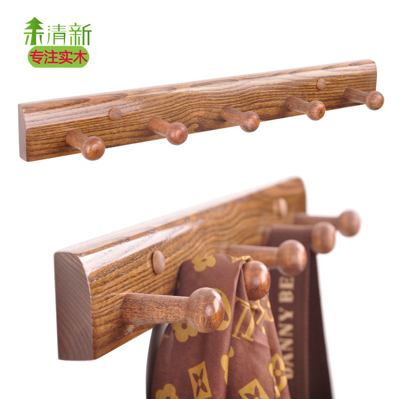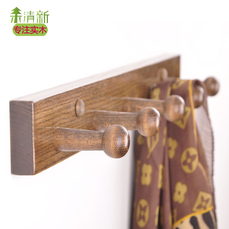 📚 入户免打孔胡桃色挂衣架壁挂衣钩衣帽架实木墙壁装饰架门后挂钩