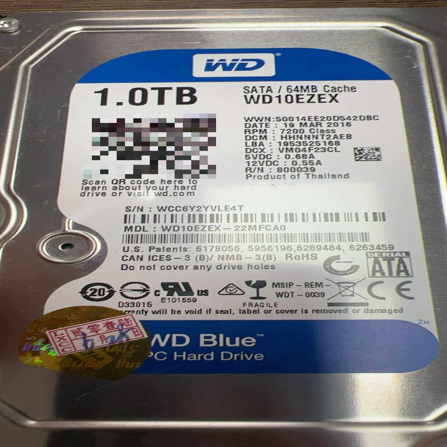 📚 西部数据WD10EZEX1TB机械硬盘,3.5寸SATA接--议价商品