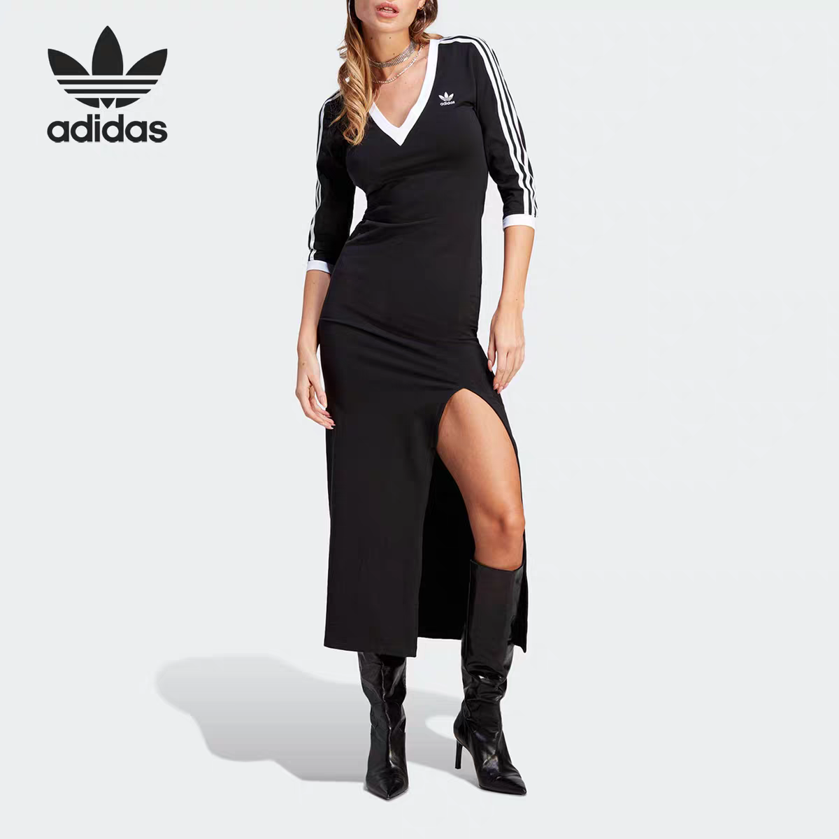 📚 Adidas阿迪达斯三叶草女子V领时尚侧开叉运动连衣裙 IK0439