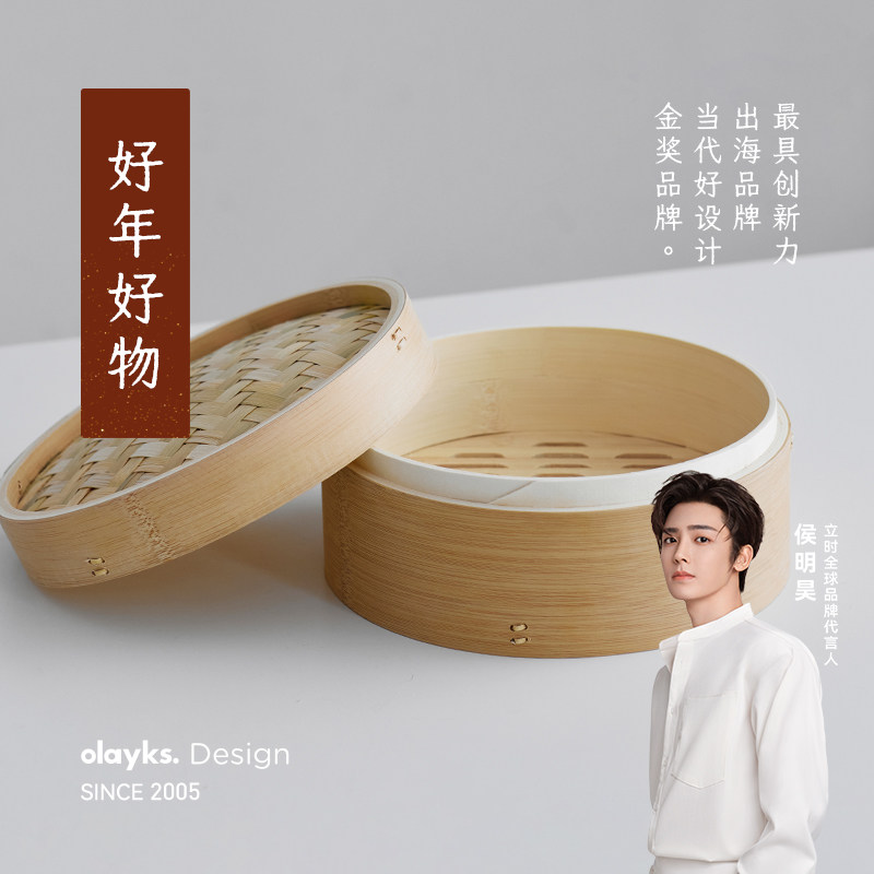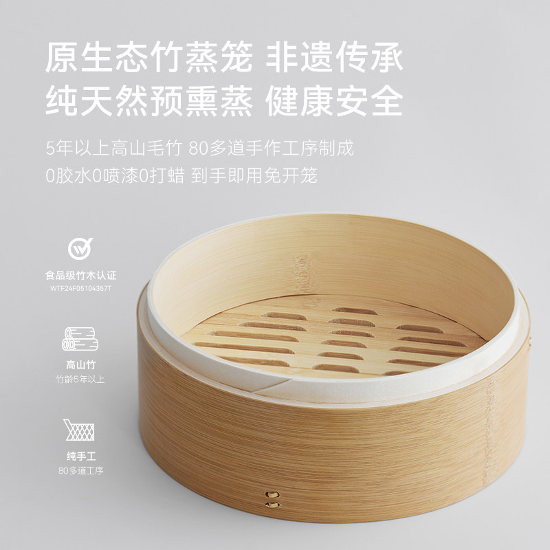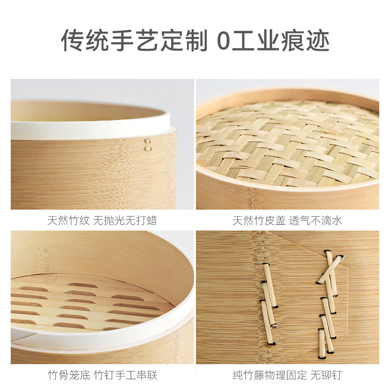 📚 olayks立时竹笼电蒸锅家用竹制蒸笼小笼包手工竹编蒸屉蒸架包子
