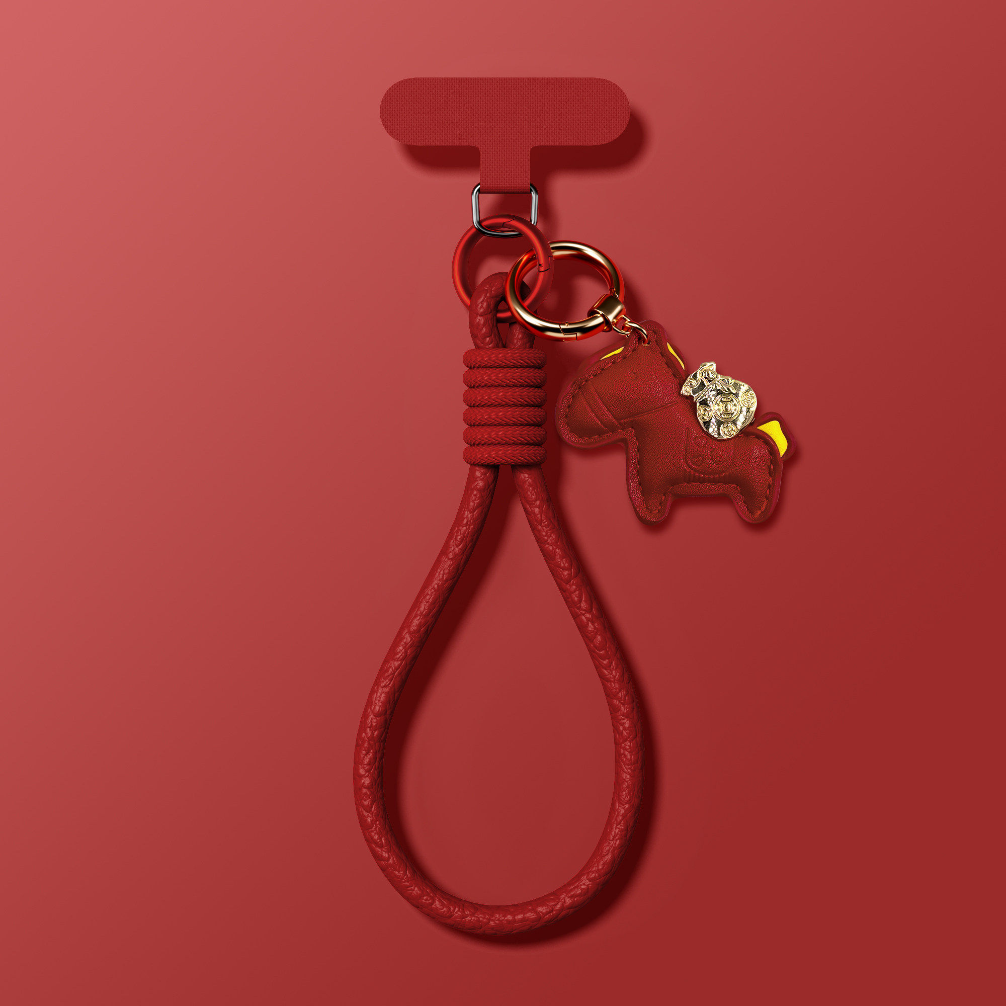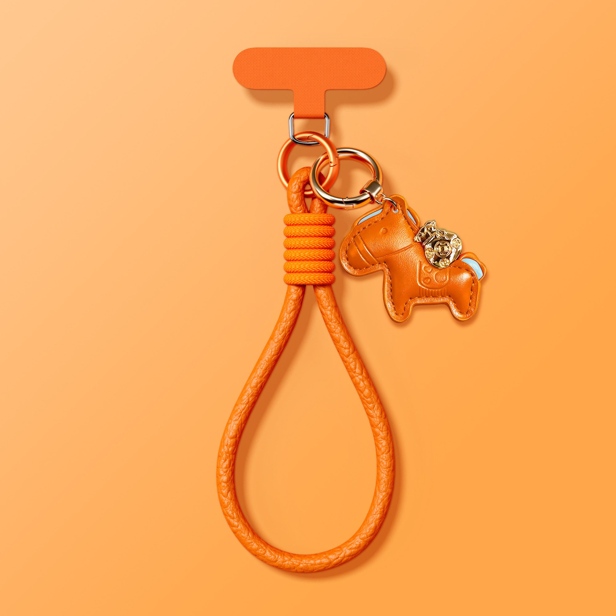 📚 【高品质】马年中国红手机壳挂绳斜跨新款小马挂件马上有钱手腕编织短绳橙色便携适用某果某为手机壳挂绳东