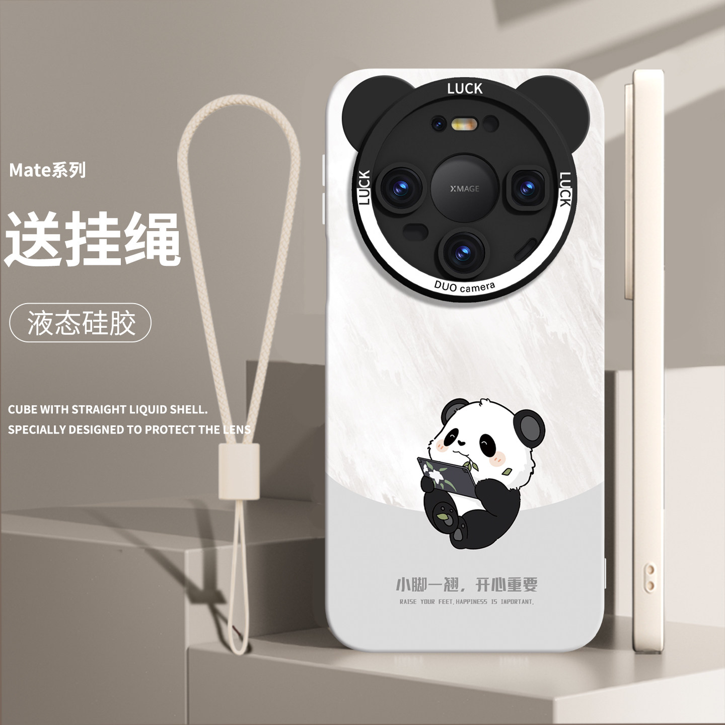 📚 熊猫适用华为mate80手机壳2026新款mate80promax液态硅胶70Pro保护套全包防摔60外壳系列50黑色air标准版高级