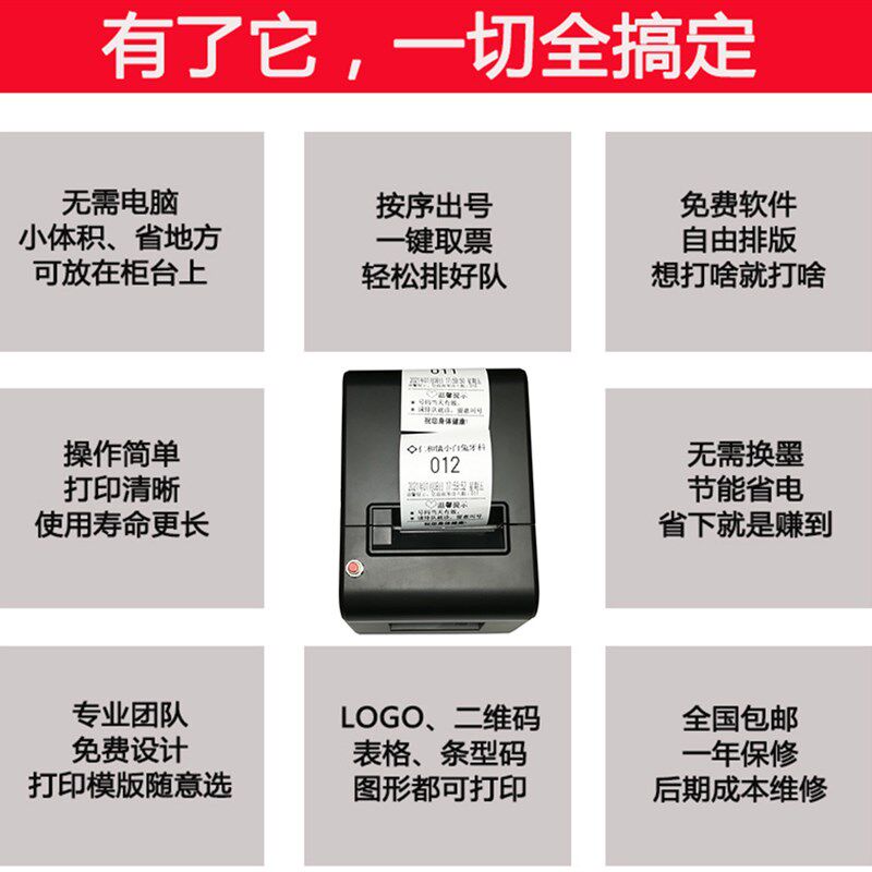 📚 简易排队取号机叫号取餐器诊所无线挂号排号机小型打印取票机系统