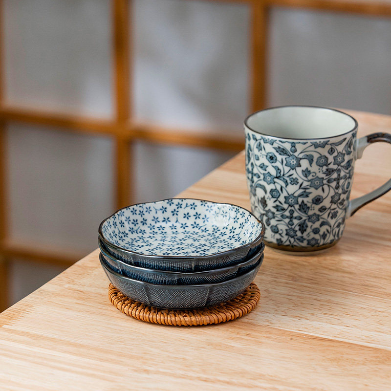 📚 美浓烧日式釉下彩餐具古染菜盘骨碟子陶瓷家用盘早餐寿司盘小吃盘