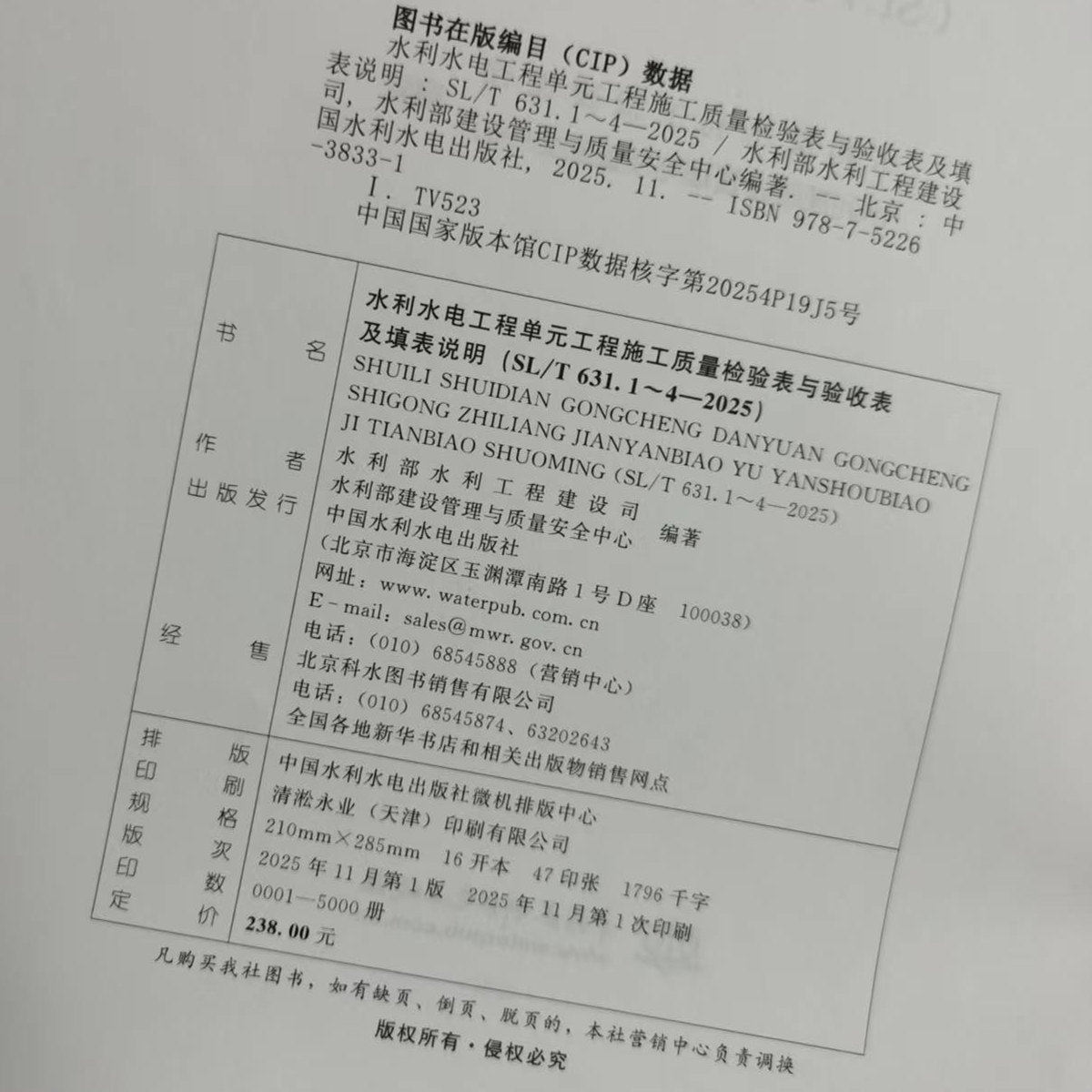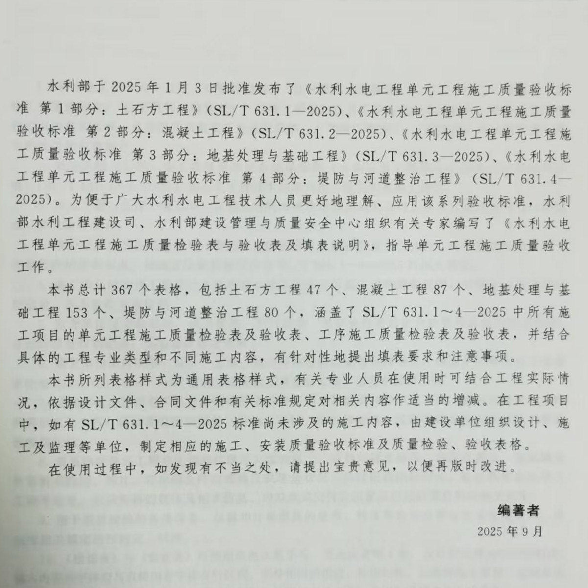 📚 2025年红皮书水利水电工程单元工程施工质量检验表与验收表及填表说明 水利部建设局 施工质量验收标准SL631-2025 SL 631.1-4