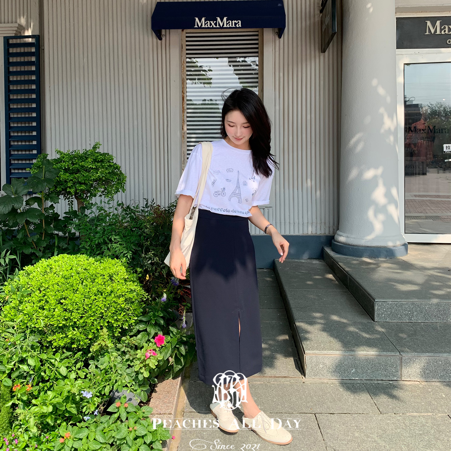 📚 PEACHES ALL DAY巴黎盛夏 手绘宽松舒适Oversized藏肉夏薄T恤