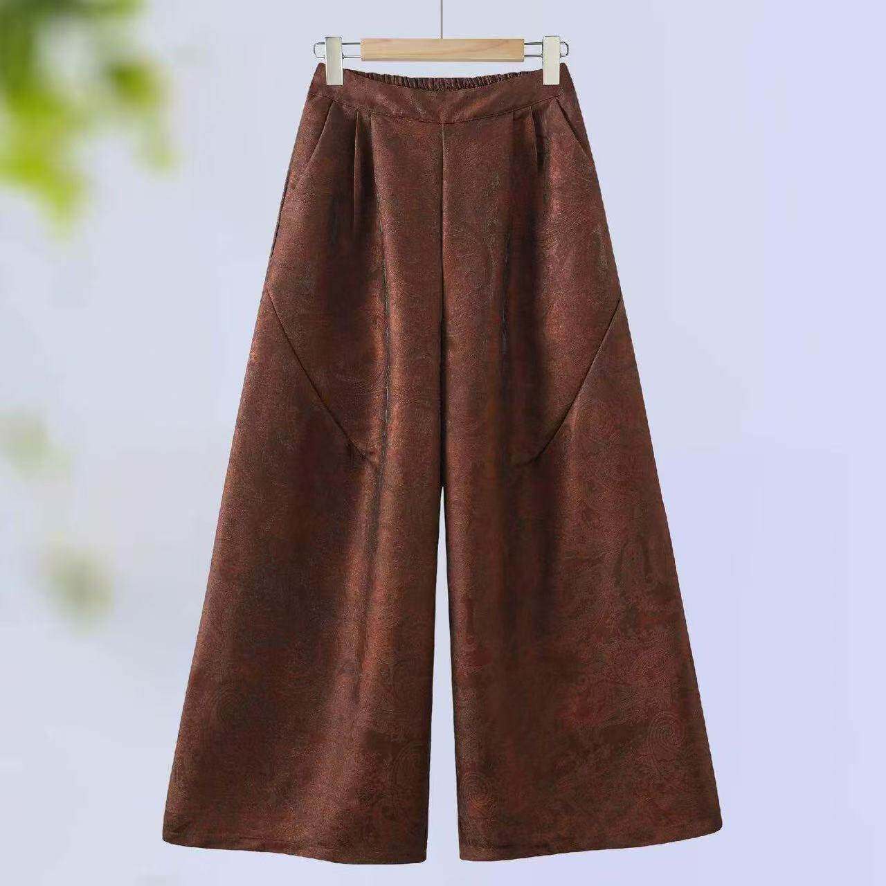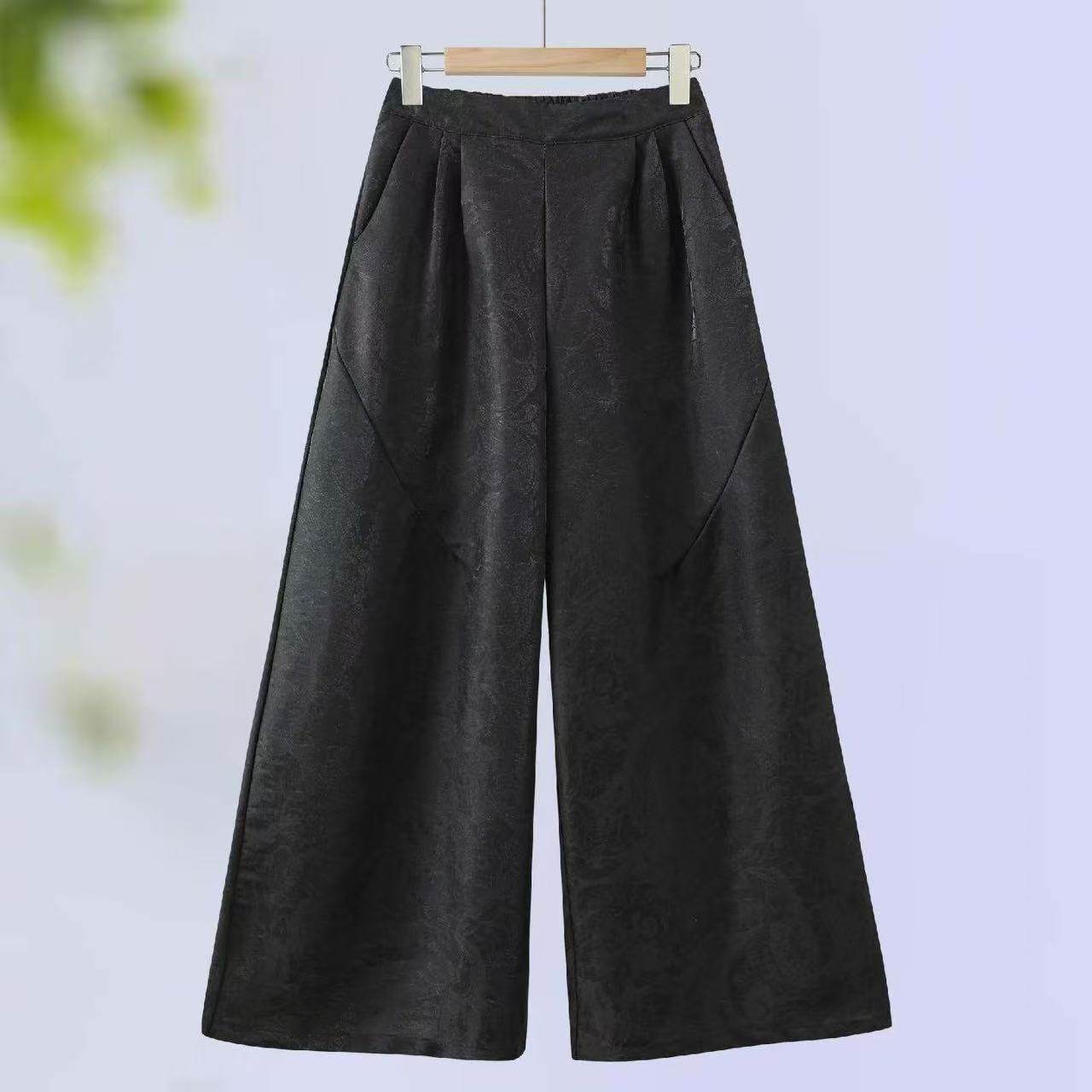 📚 2026秋冬新款香云纱浮光锦休闲裤女中式国风百搭轻奢阔腿大摆裤子