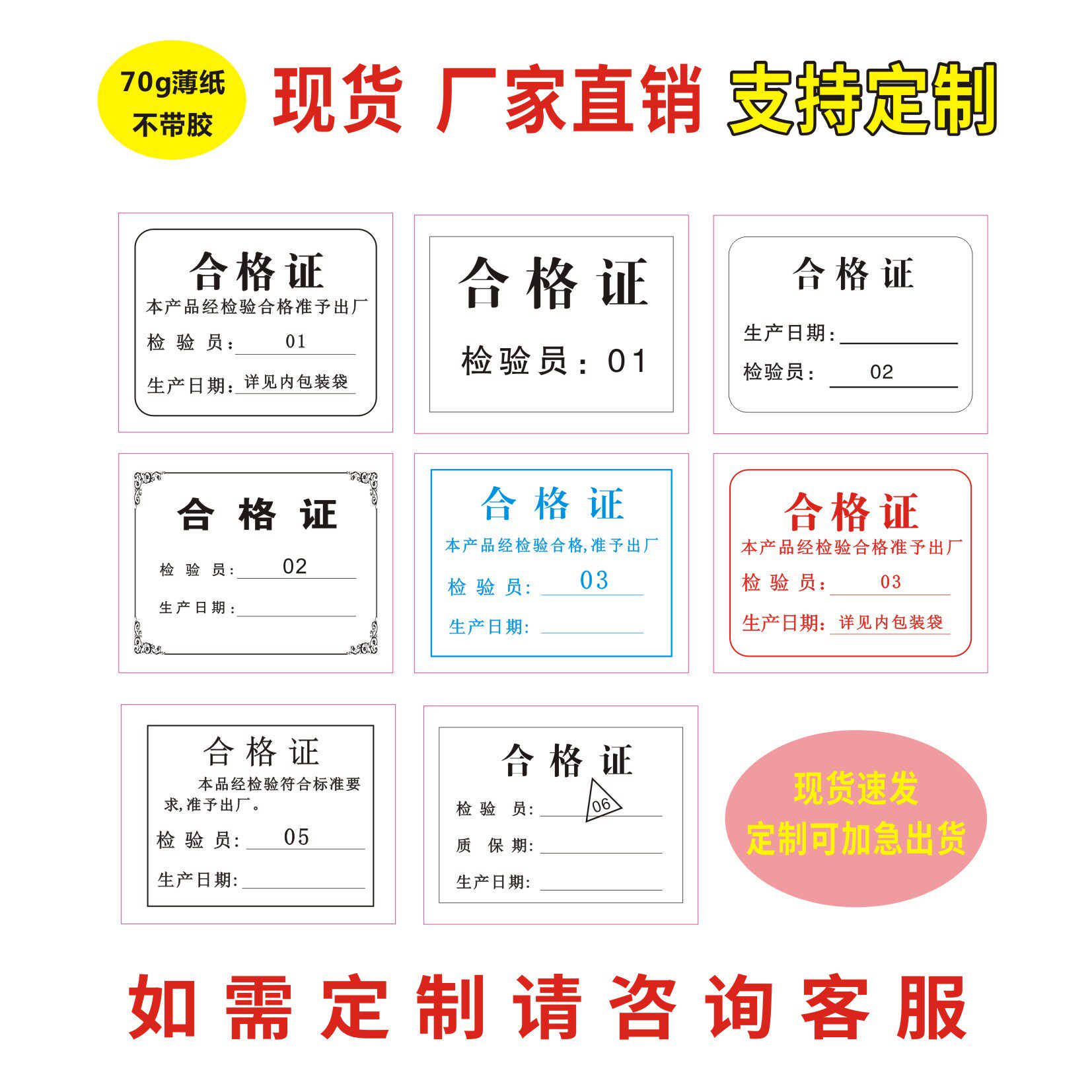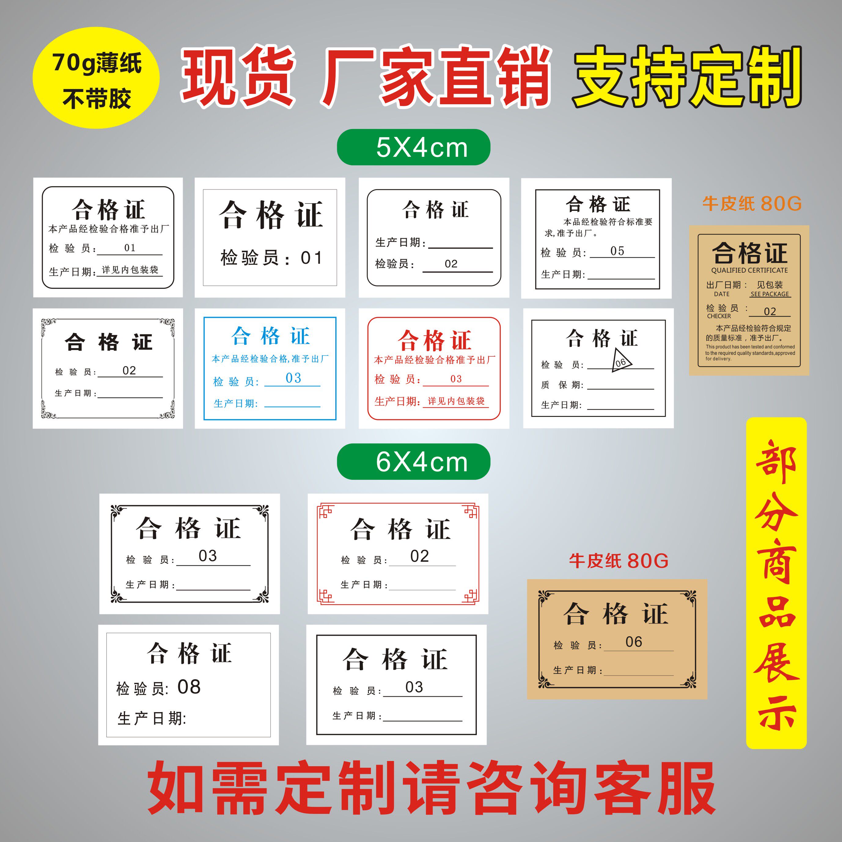 📚 合格证标签定做食品出厂日期检验员编号工号印刷纸张装箱薄纸定制