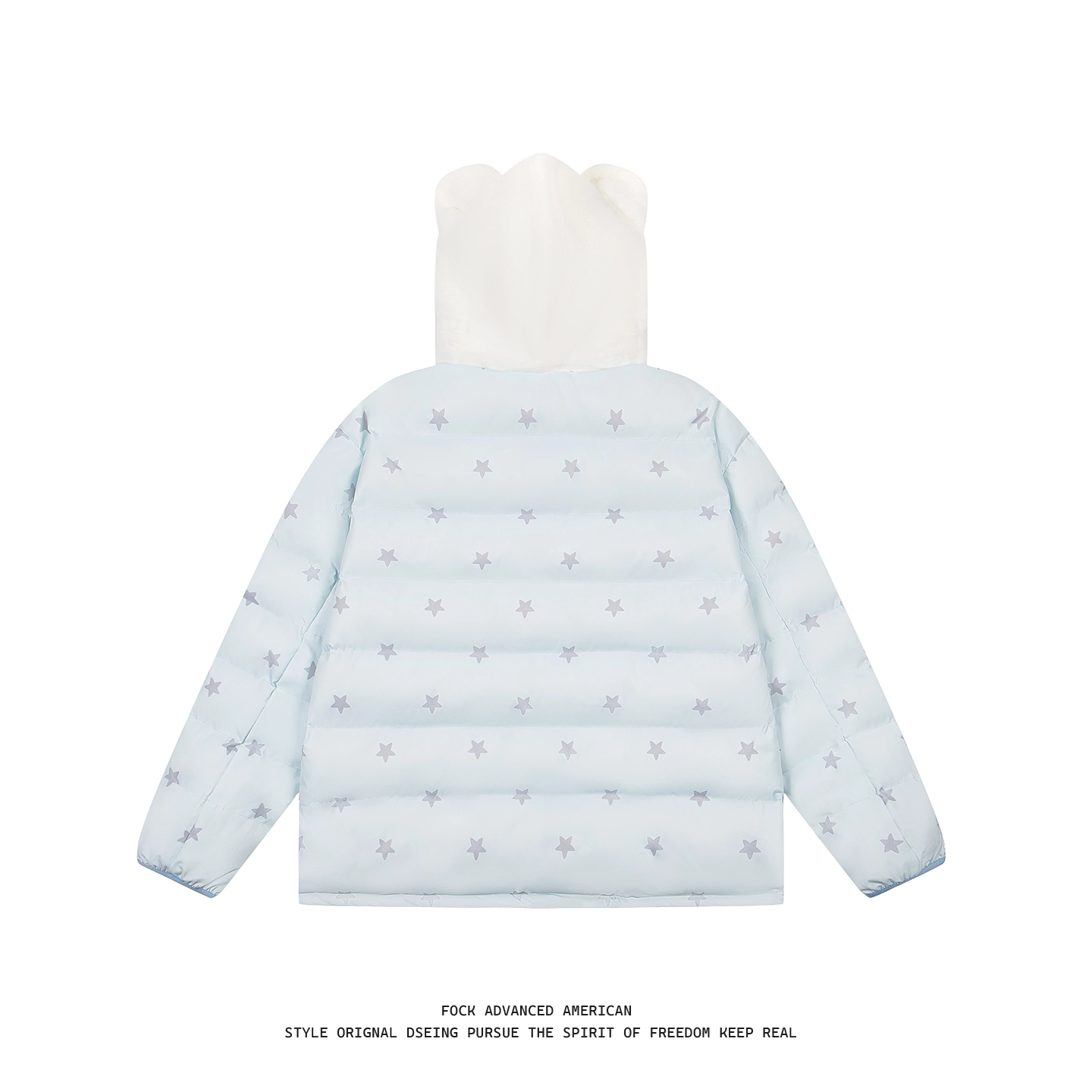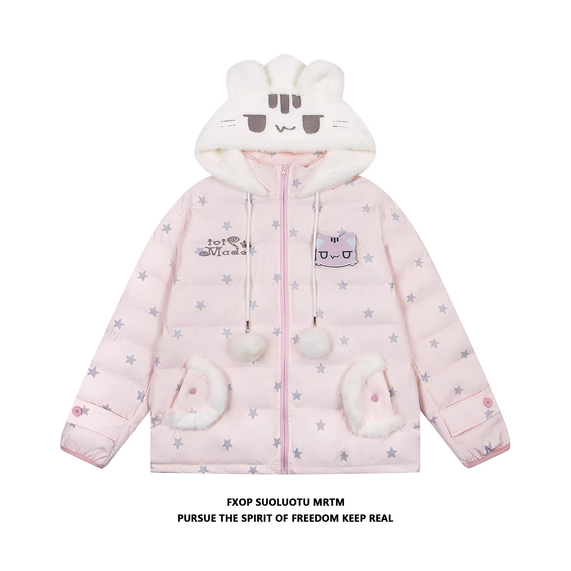 📚 FXOP满印星星猫咪魔术贴毛绒刺绣连帽棉服女宽松慵懒加厚保暖棉衣