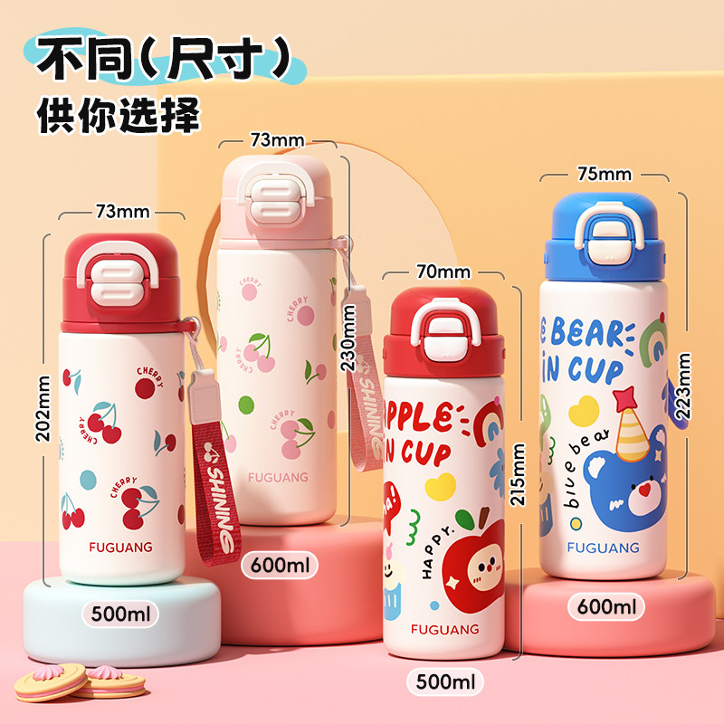 📚 富光保温水杯女生一盖双饮口儿童学生便携带吸管男600ml弹盖杯子