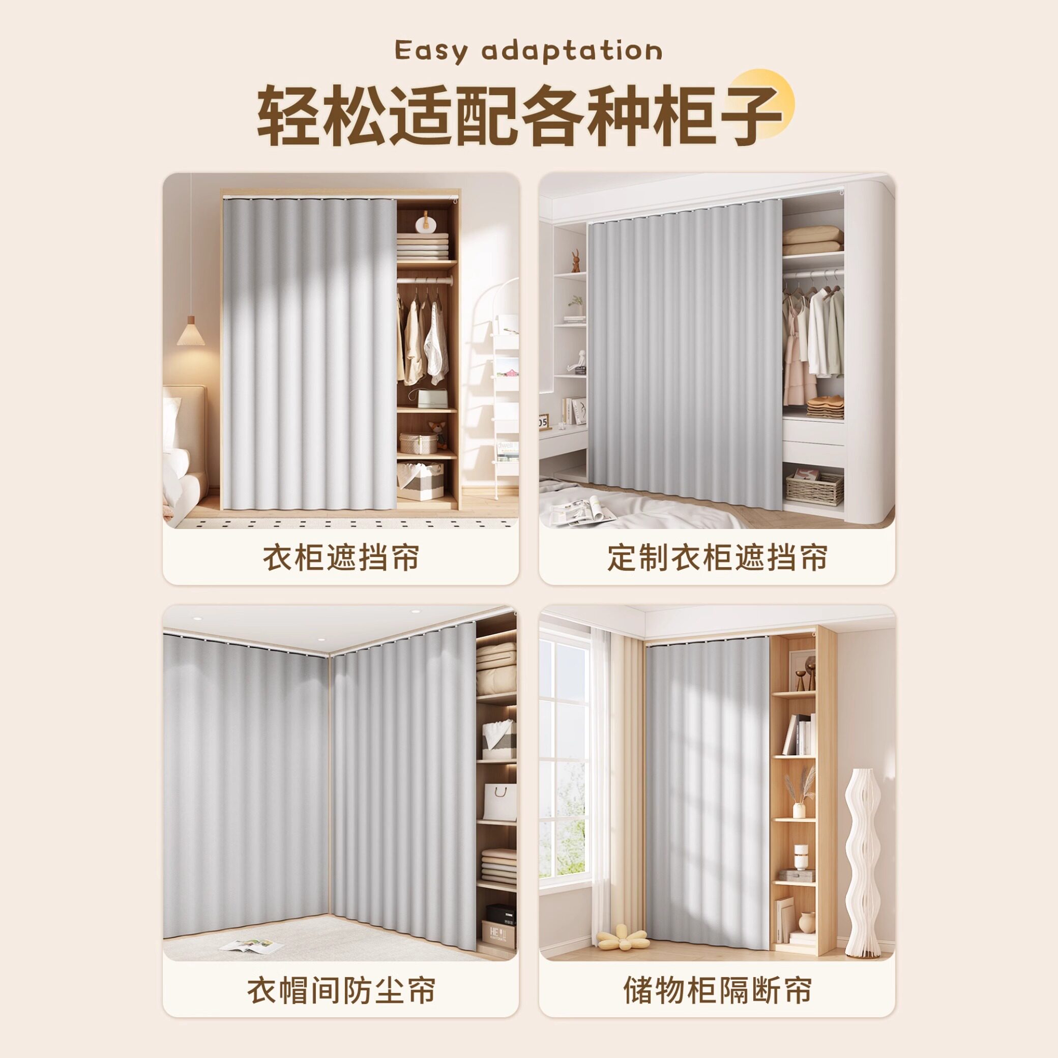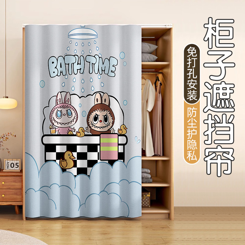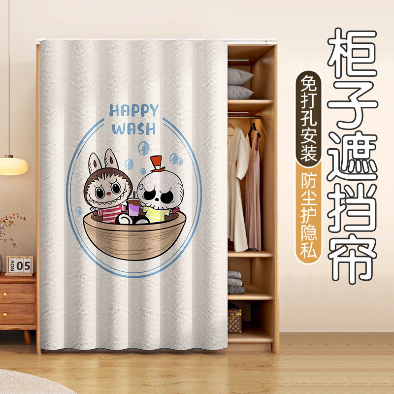 📚 无门衣柜鞋柜遮挡帘柜子防尘门帘衣橱货架纯色免打孔杂物遮丑帘子