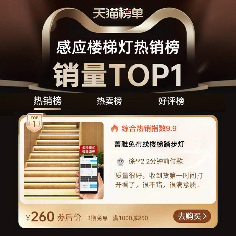 49¥ CZ193 nrvTU8K1MgL¥ https://m.tb.cn/h.7szvohy 免布线楼梯踏步灯网红楼梯灯智能感应楼梯灯带踏步感应灯台阶灯 --------------------- 【原售价】824元 【现售价】361元。