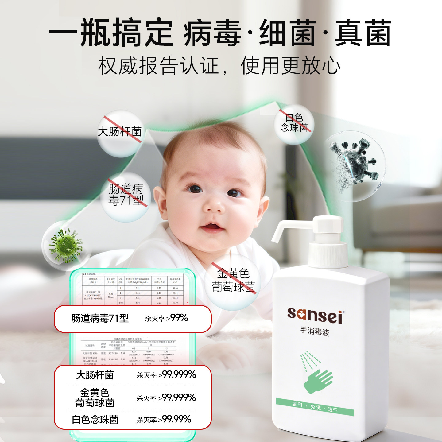 📚 免洗手消毒液婴儿孕妇速干儿童无酒精杀菌专用消毒水母婴家用便携