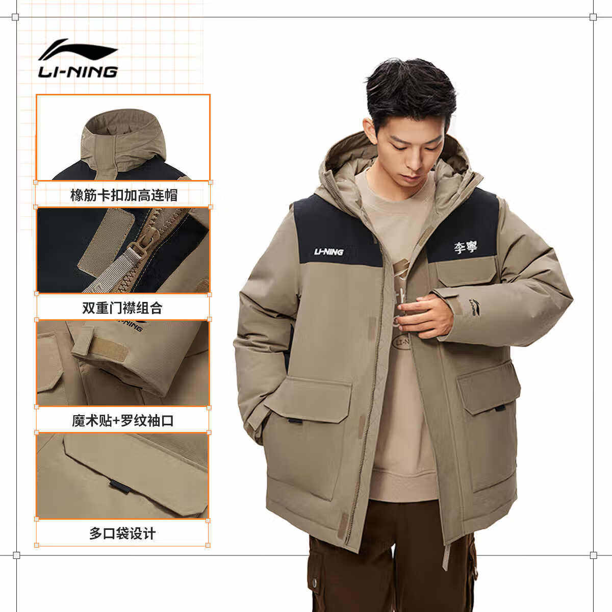 📚 李宁火锅羽绒服时尚中长款男冬季运动时尚系列鸭绒运动服AYMU227