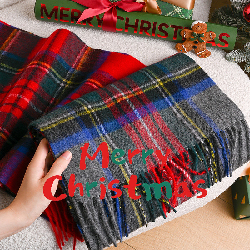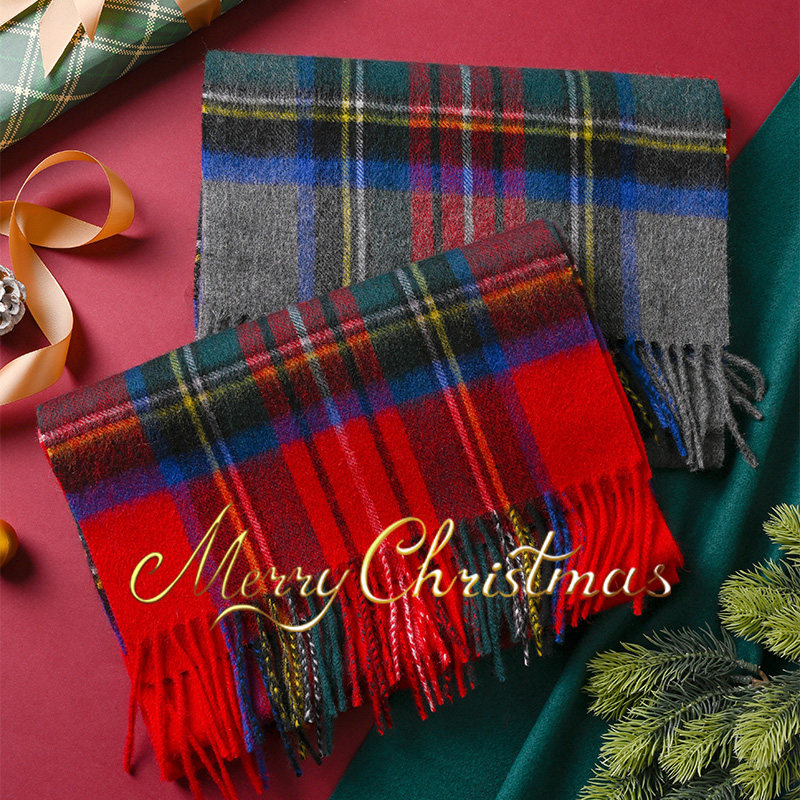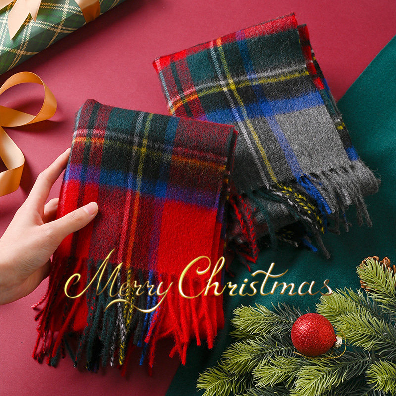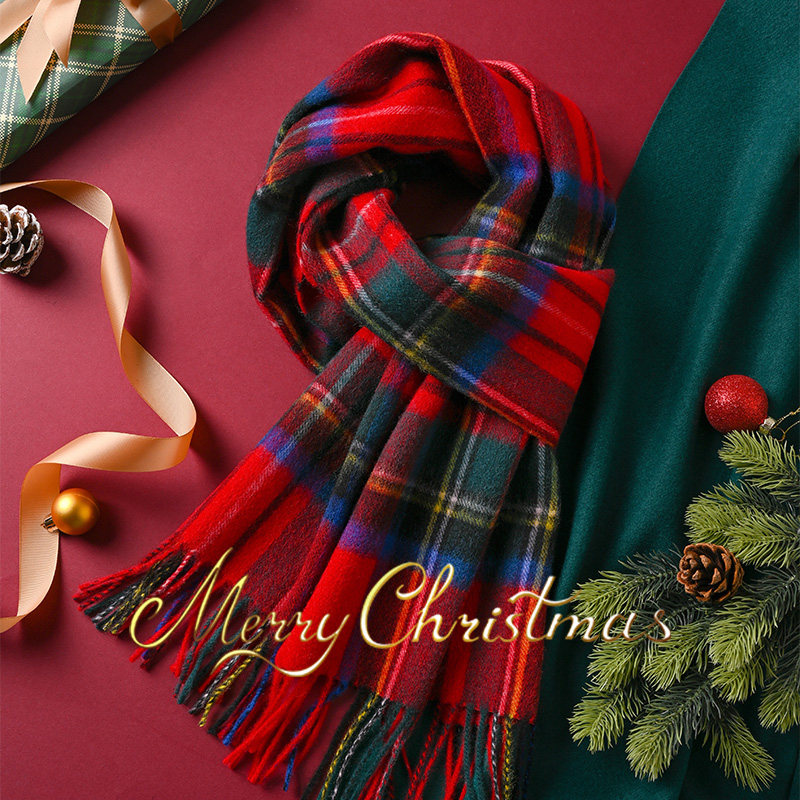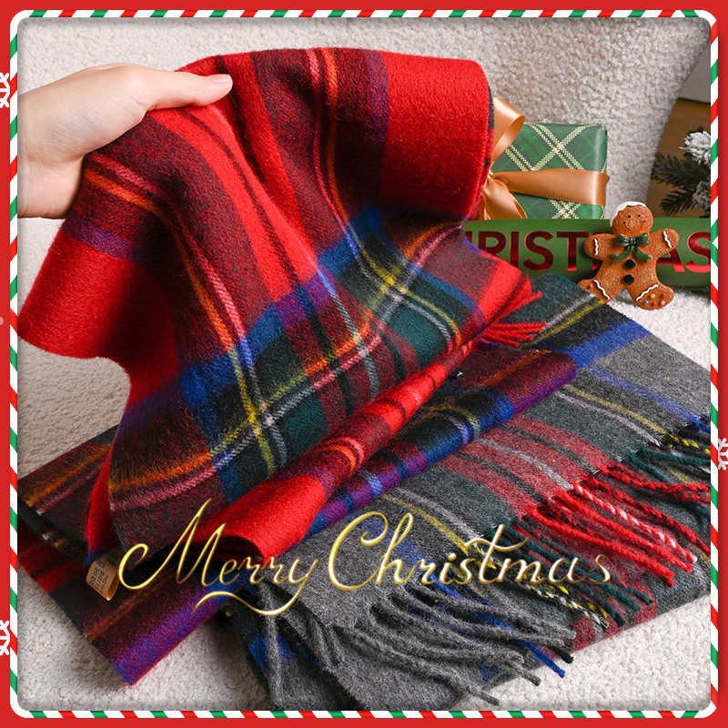 📚 格子围巾纯羊毛女秋冬季绿100羊绒小围脖红色儿童高级感冬天高端