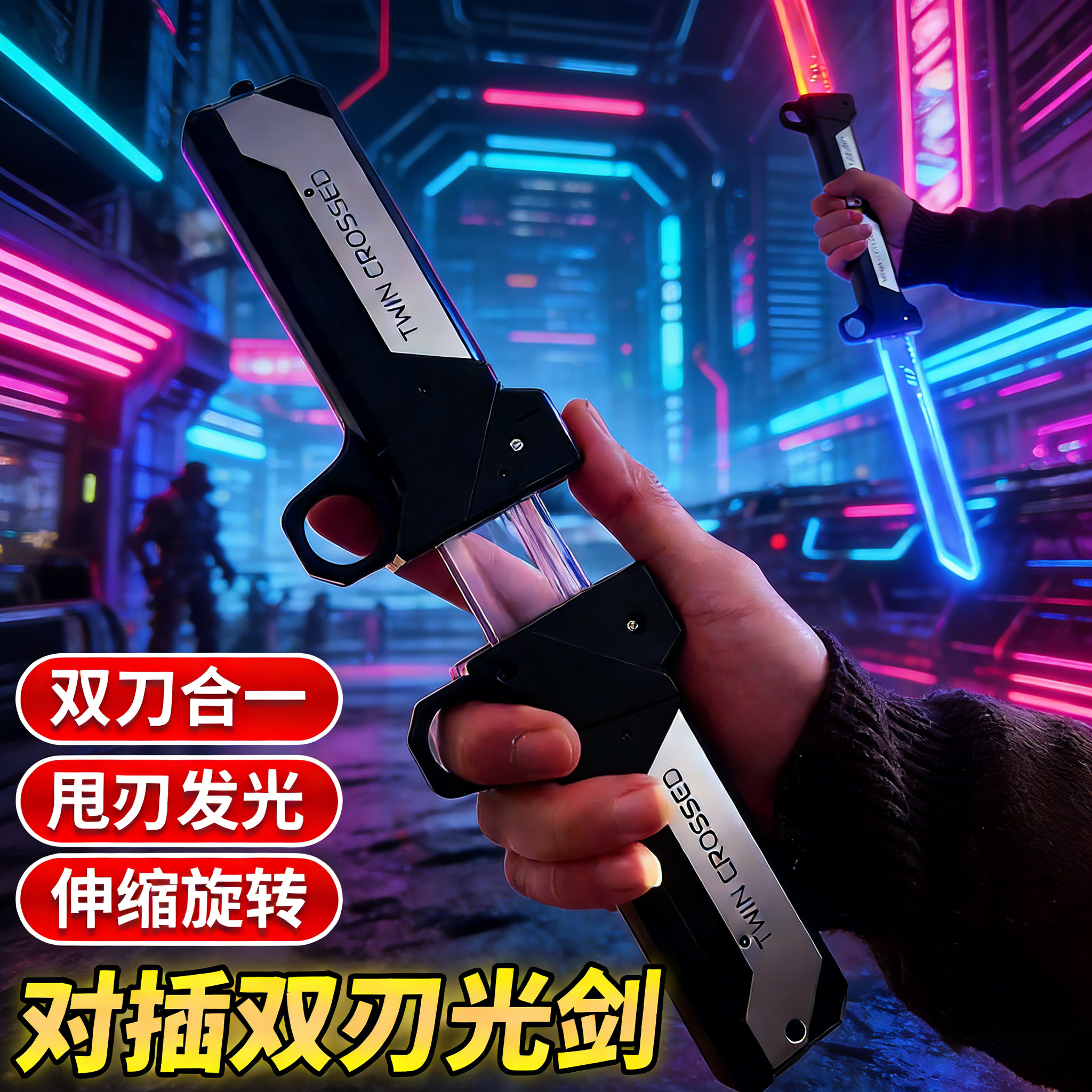 📚 双刃伸缩光剑对插双刀流发光玩具剑儿童创意互动荧光棒红蓝双色二