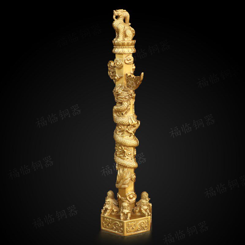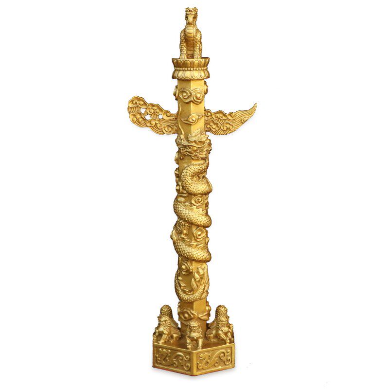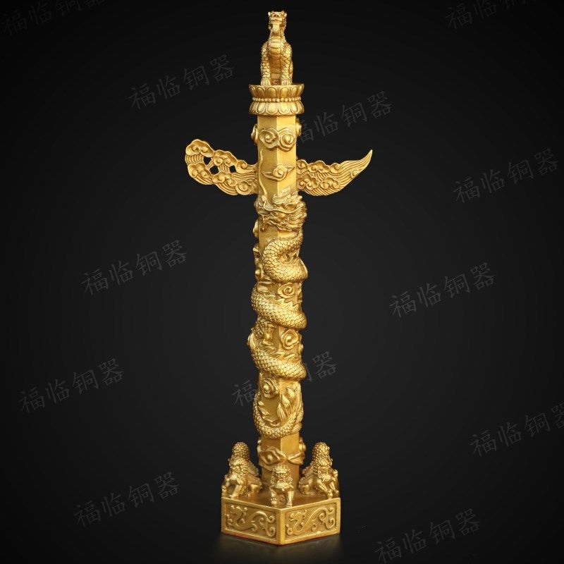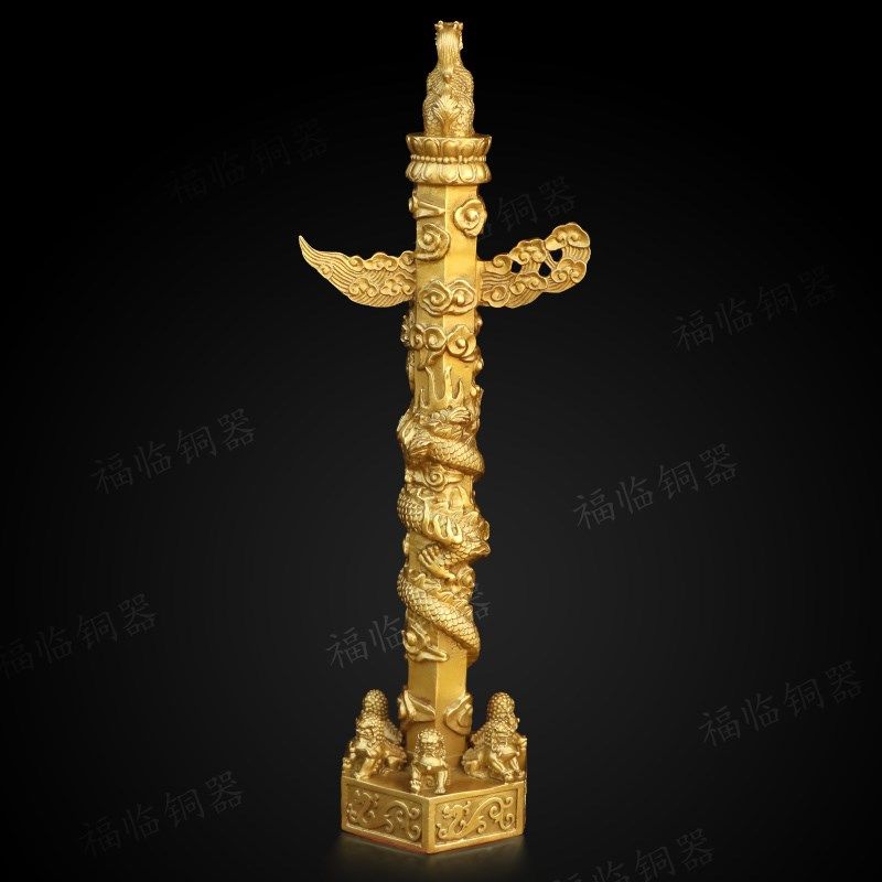 📚 纯铜华表柱中华龙图腾柱华表黄铜摆件室内客厅桌面吉祥装饰工艺品