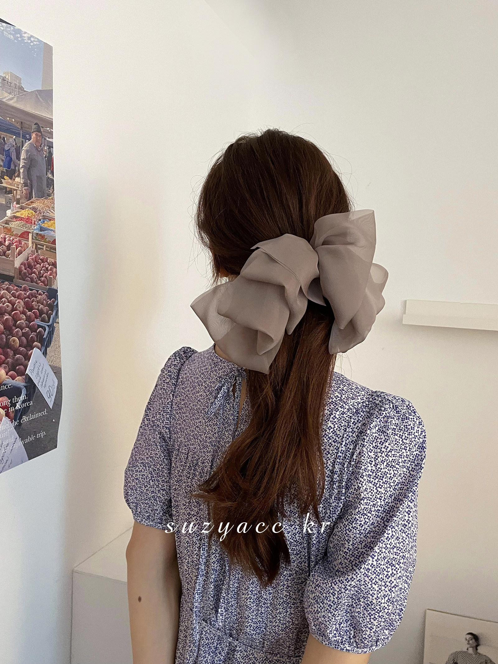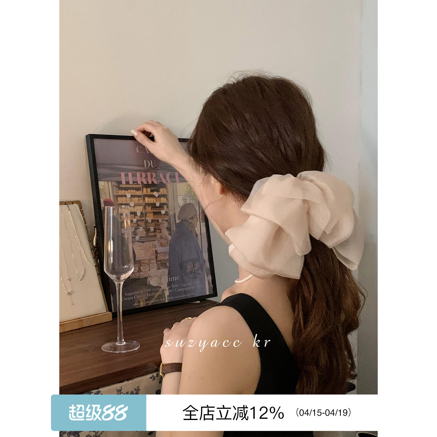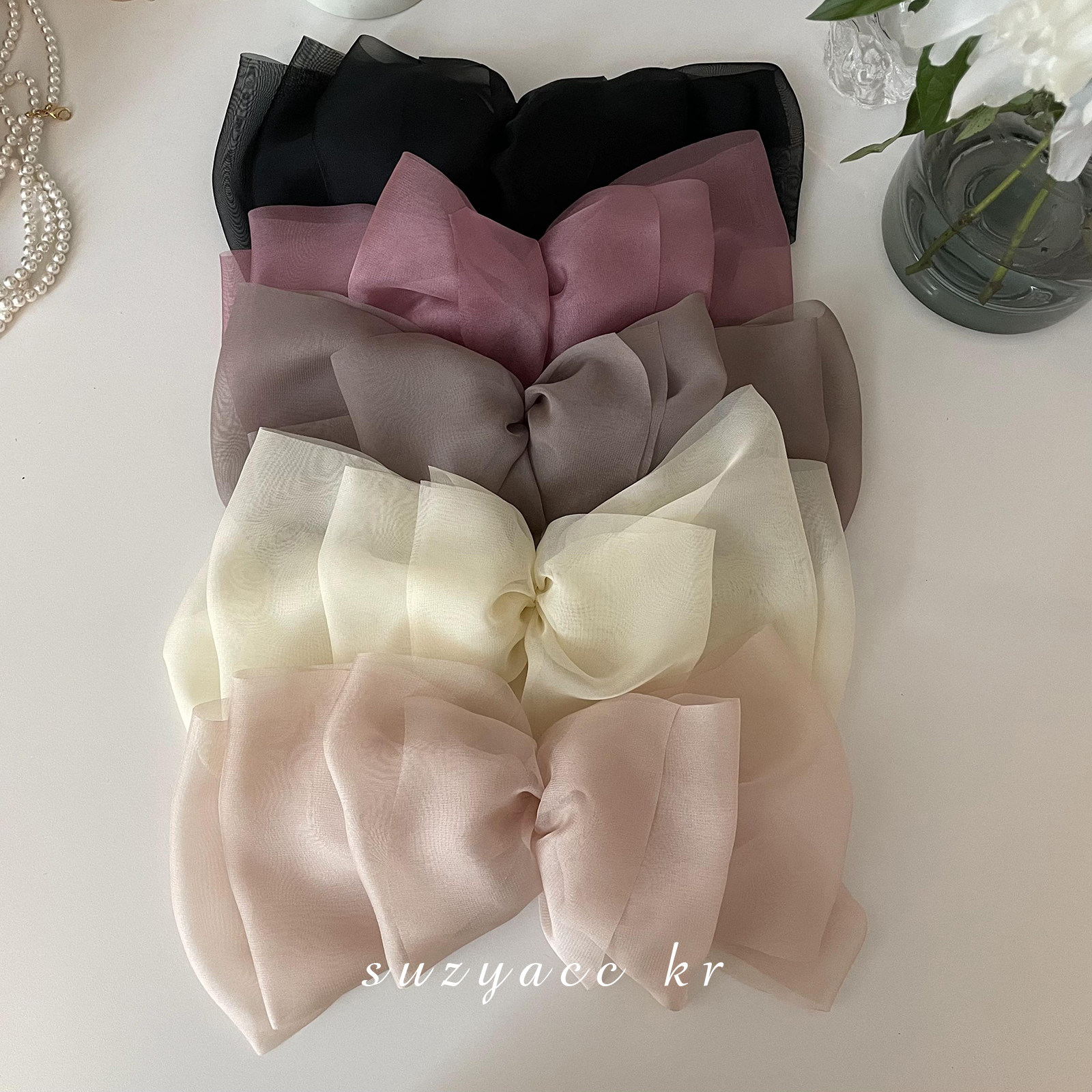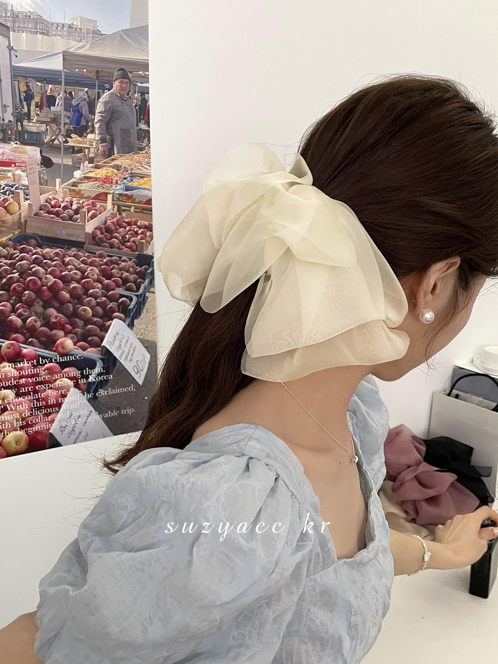 📚 suzyacc kr超仙网纱蝴蝶结发夹女后脑勺盘发弹簧夹高马尾夹子头饰