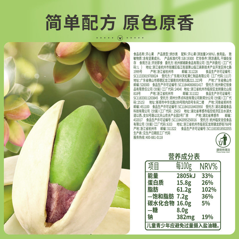 📚 百草味坚果开心果不漂白炒货干果原色盐焗味袋装孕妇休闲零食