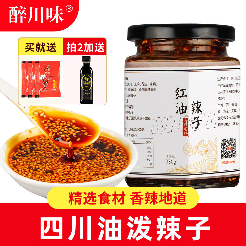 📚 油泼辣子230g四川特色油辣子香辣红油调料辣椒酱凉拌菜微辣辣椒油