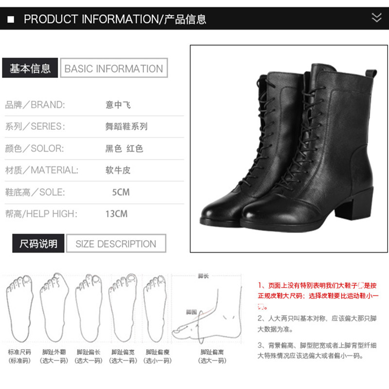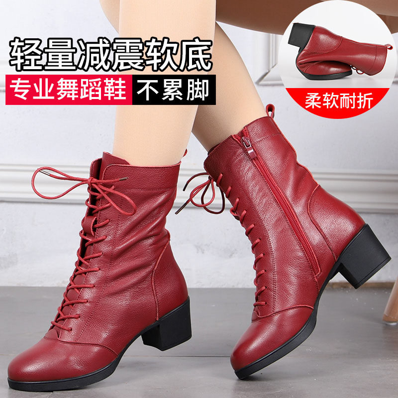 📚 意中飞真皮舞蹈鞋女鞋广场舞鞋子爵士秋冬跳舞鞋女软底水兵舞蹈靴
