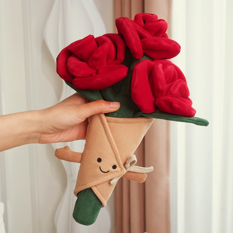 📚 趣味蛋糕小兔子毛绒公仔情人节玫瑰花手捧花治愈系安抚陪伴玩偶