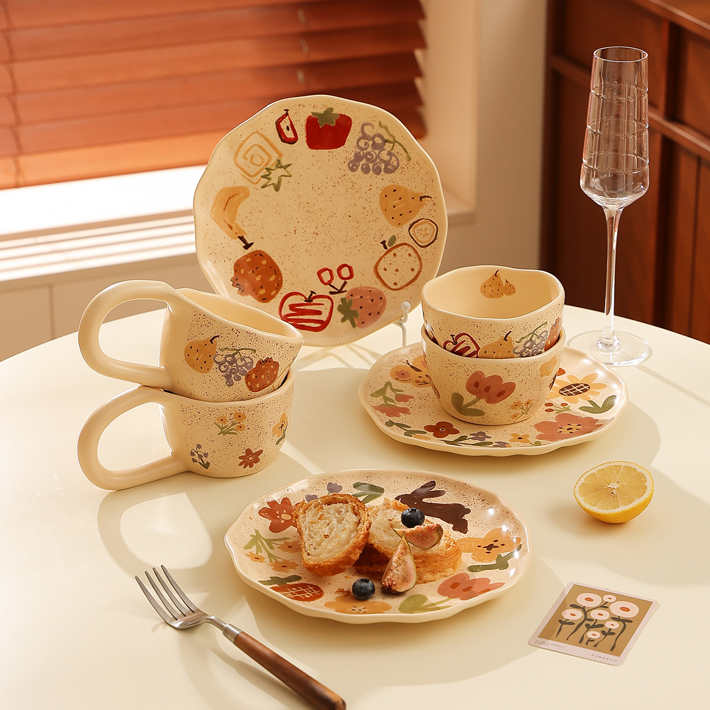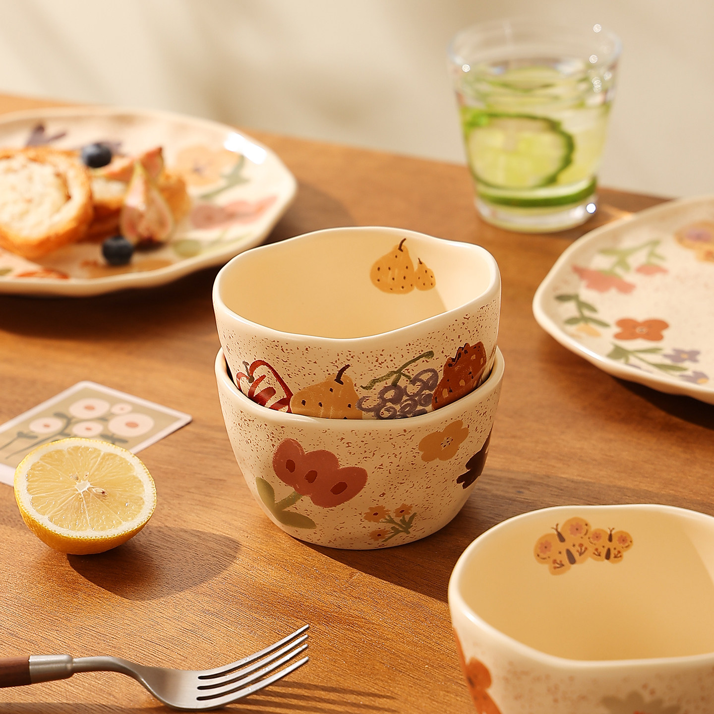 📚 复古可爱陶瓷米饭碗水果酸奶碗女生高颜值家用盘子一人食餐具套装