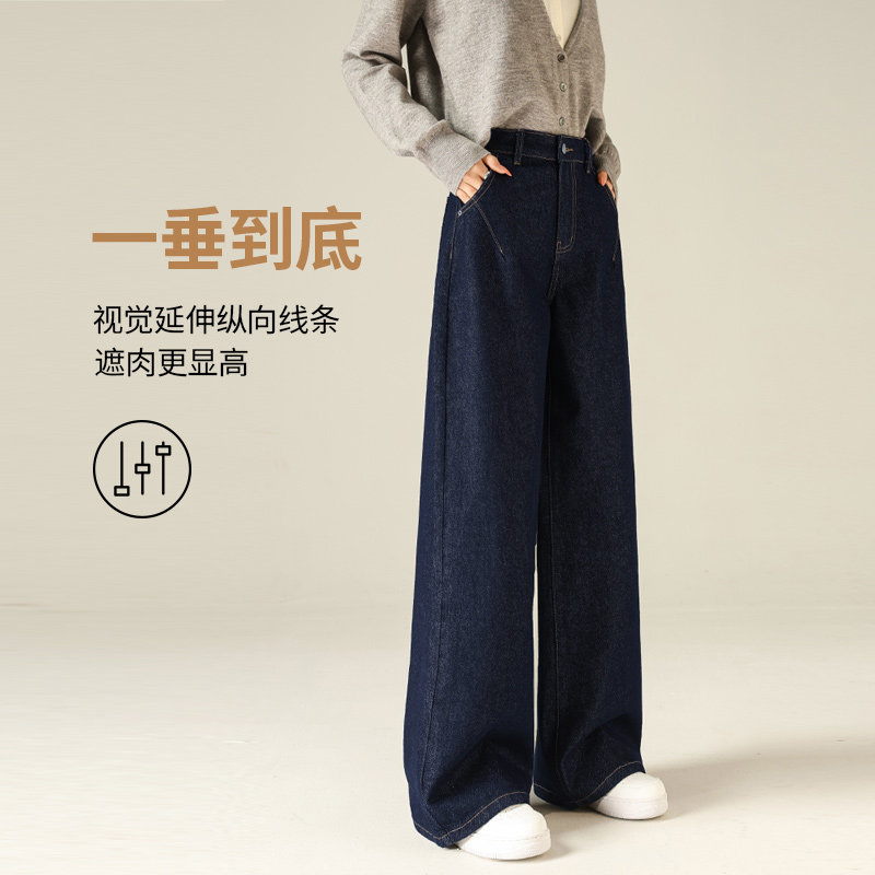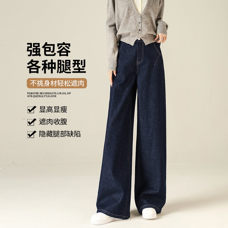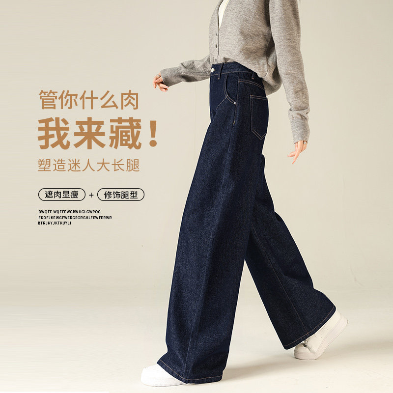 📚 阔腿牛仔裤女2026新款春季流行爆款高腰宽松梨型显瘦丹宁蓝直筒裤