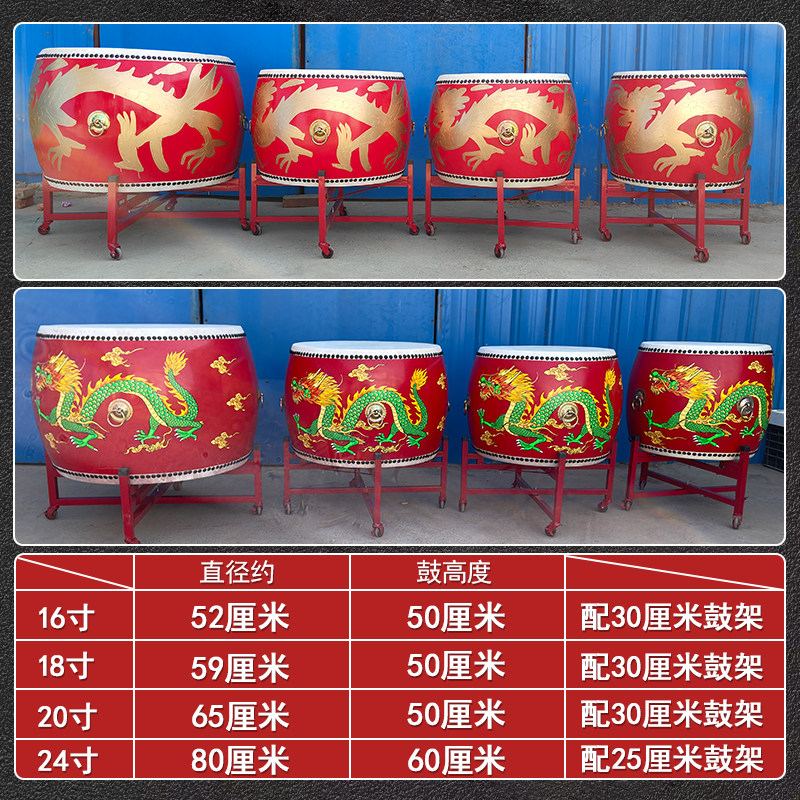 📚 新款龙鼓大鼓黄牛皮鼓锣鼓队专用牛皮红鼓演出鼓防水不掉漆不开裂