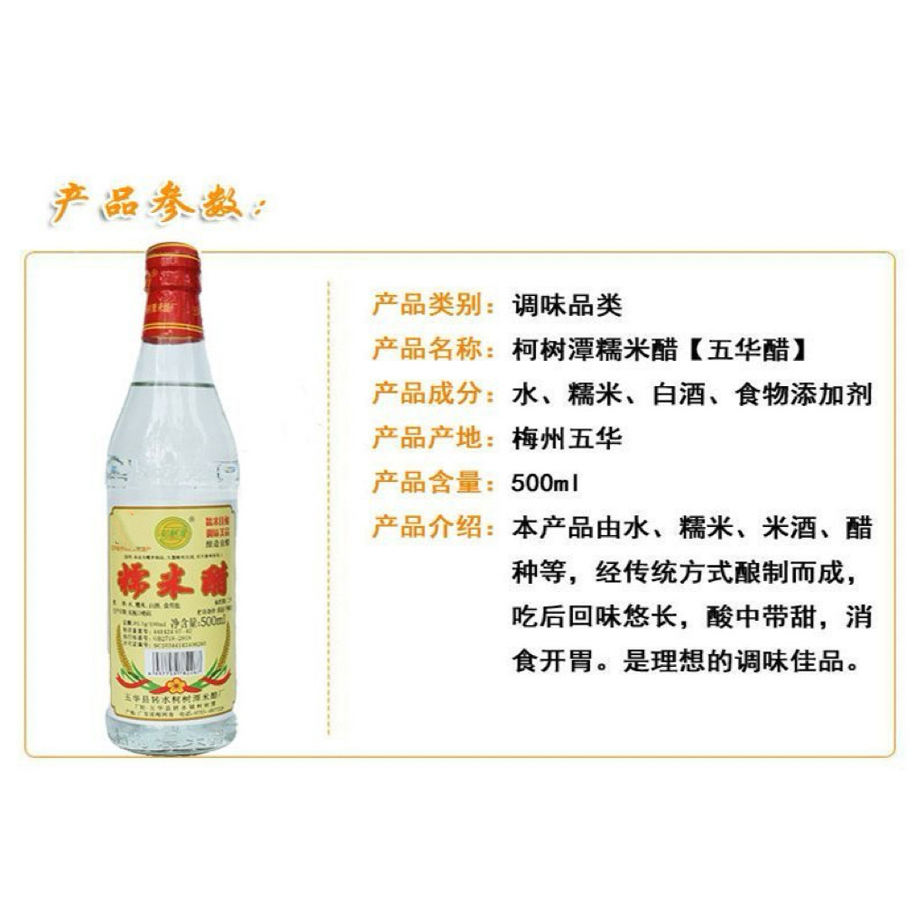 📚 五华转水柯树潭糯米醋纯粮酿造食用醋鱼生调料寿司凉拌500ml