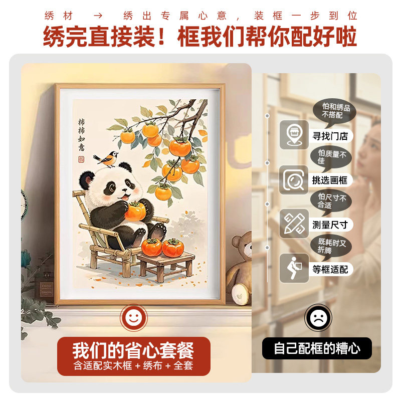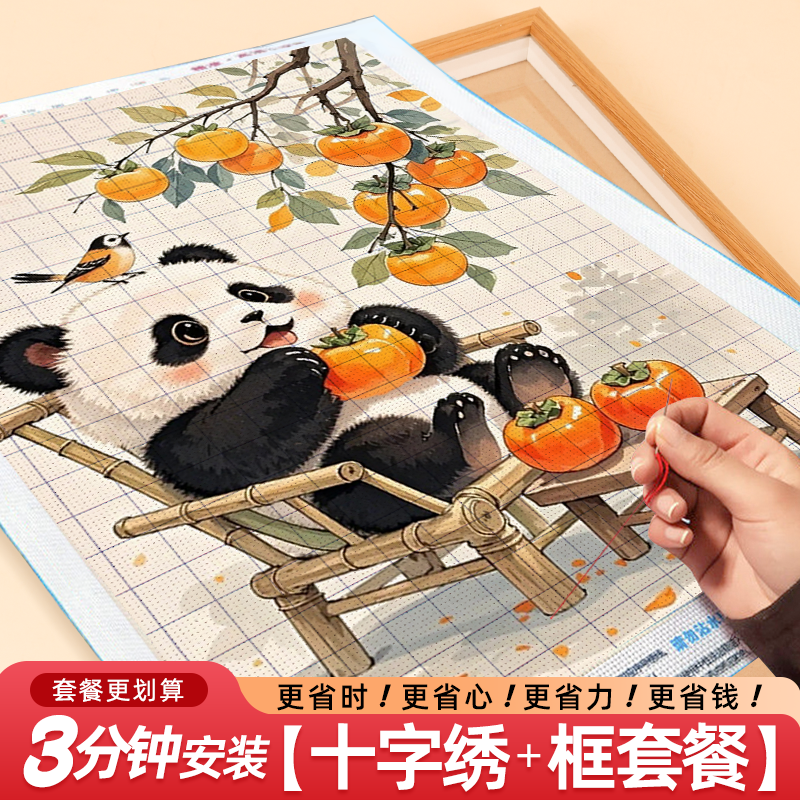 📚 柿柿如意十字绣2026新款熊猫客厅高级感满绣手工diy自己刺绣小件