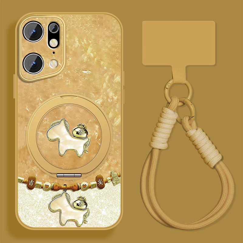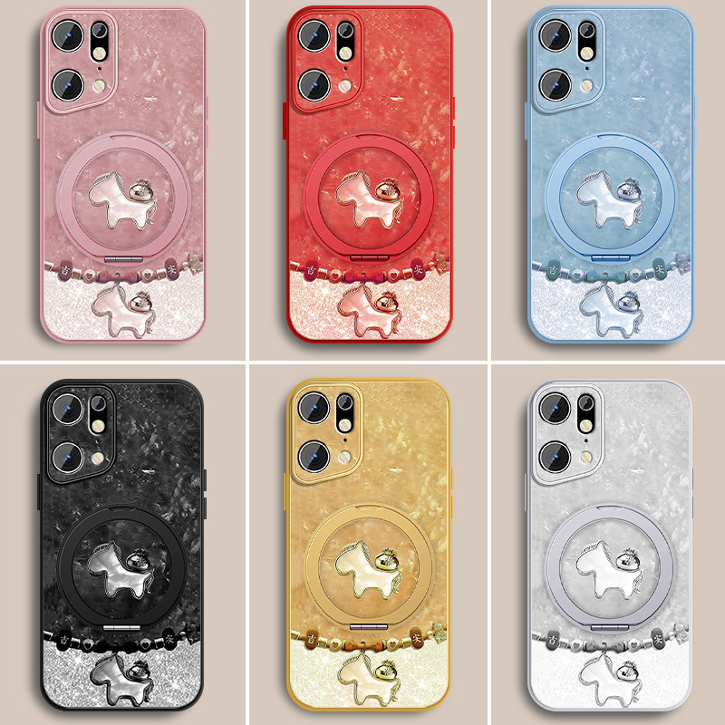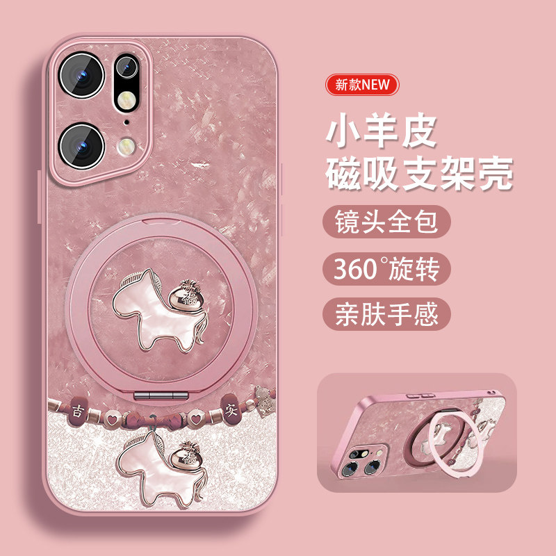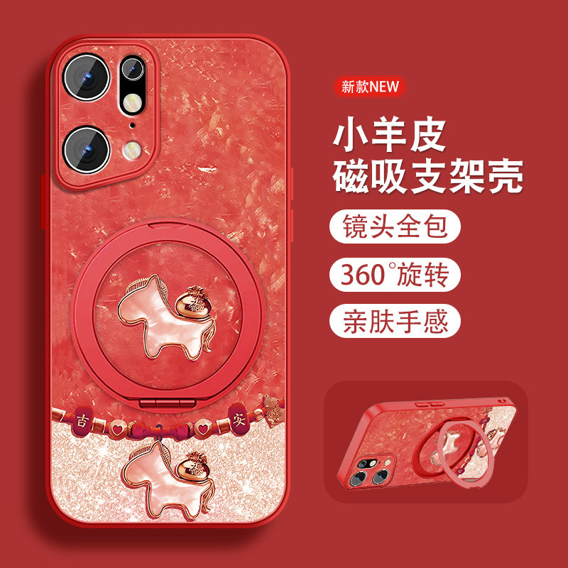 📚 祥瑞小马适用oppofindx5手机壳新款Findx5pro新年红色findx3带支架opop磁吸0pp0挂绳高级小羊皮全包防摔套外