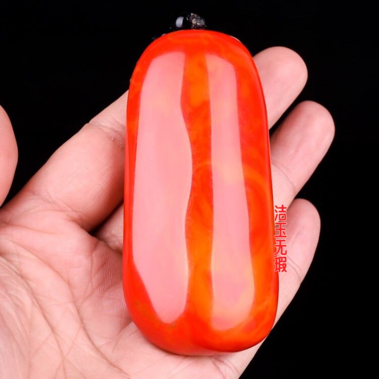 📚 鸡血石手把件 鸡血玉原石把玩件玉石镇尺和田玉色手把件把玩件