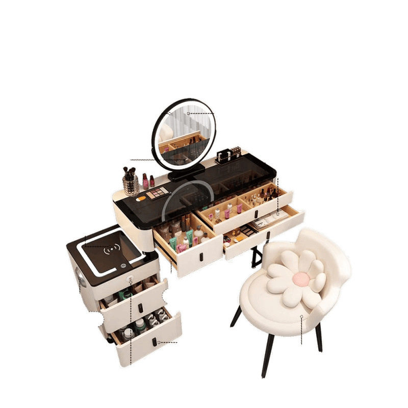 📚 北欧卧室化妆台现代简约多功能一体柜化妆桌智能梳妆台无线充电